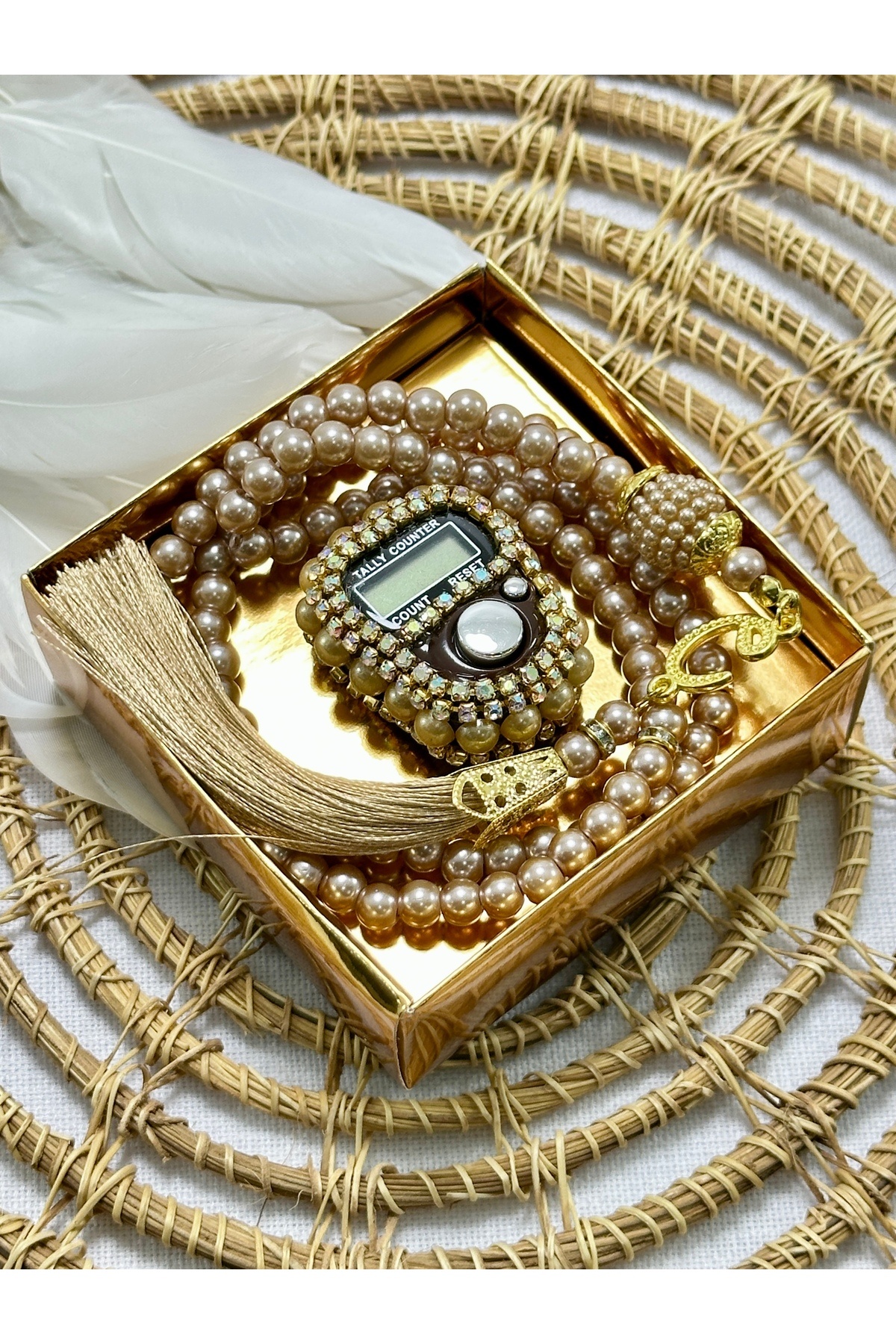 Hediyelik Taşlı Zikirmatik Ve Tesbih Seti Kutulu