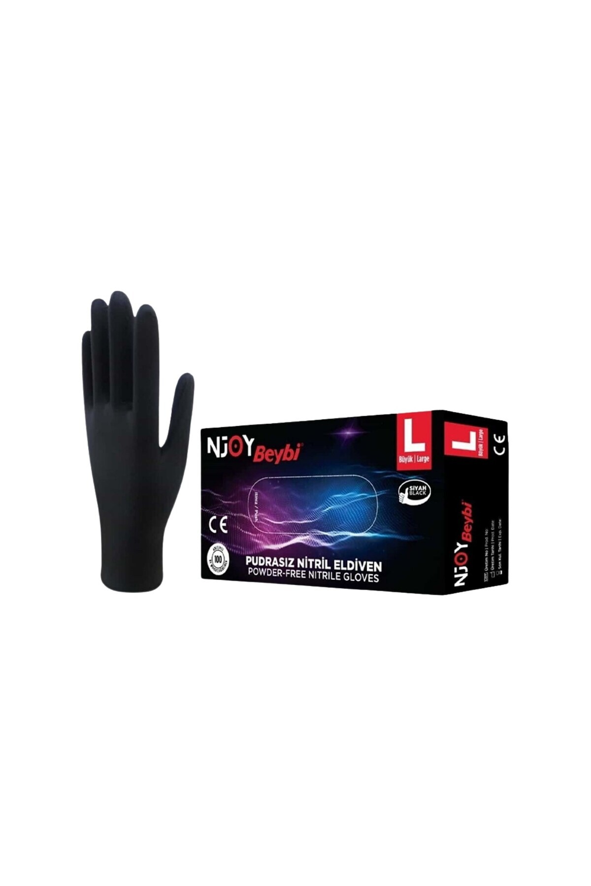 Beybi Muayene Large Pudrasız Njoy Nitril Siyah Eldiven