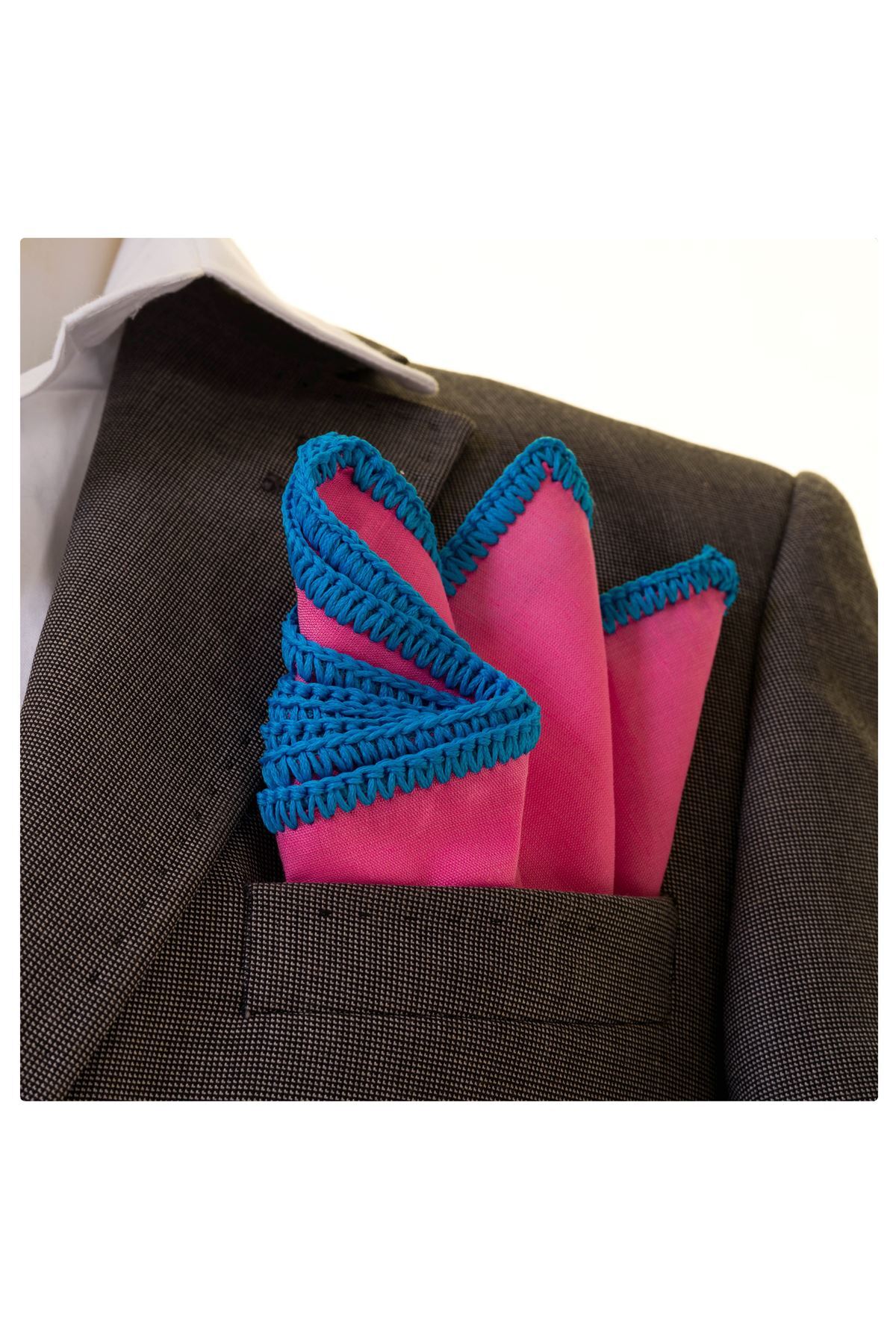 Lila Natural Keten Üzerine Mor Kenar Örgülü Cep Yaka Mendili