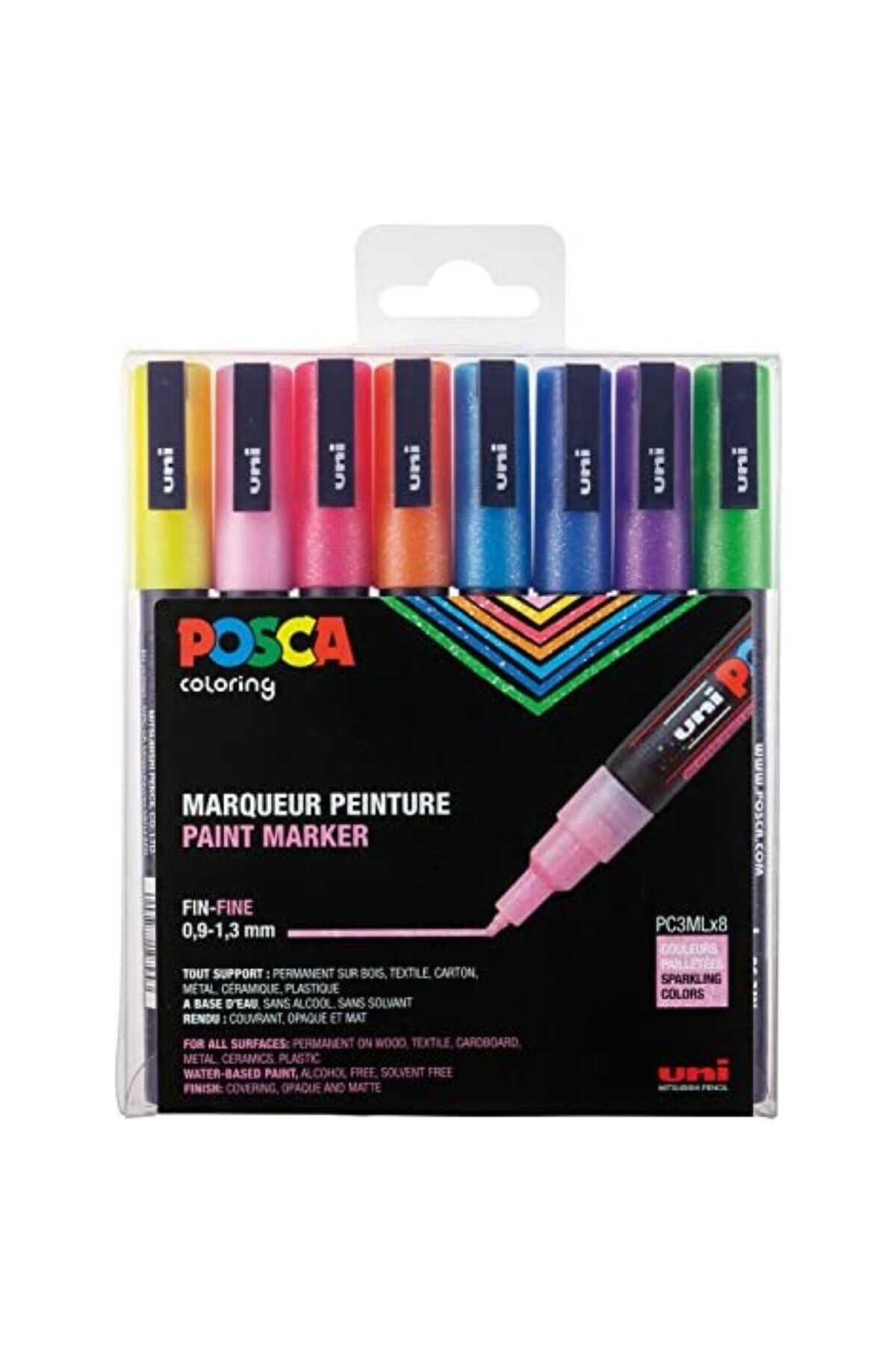 uni posca pc-3ml 0.9-1.3 mm 8 ana renk simli Eşsiz su bazlı pigment mürekkebiyle ışığa ve suya karşı dayanıklıdır.