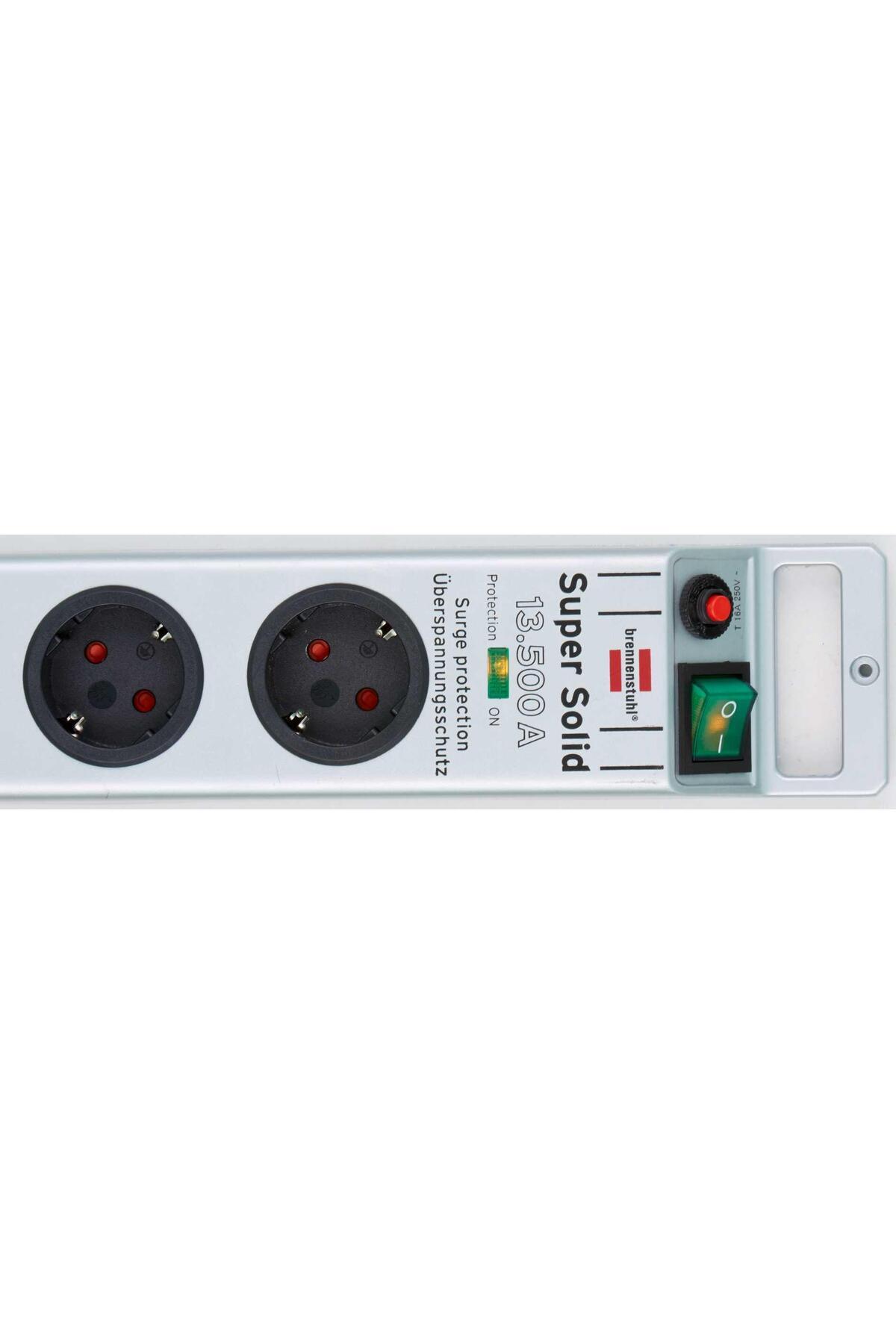Brennenstuhl Açık Kapalı Güvenlik Anahtarlı Super-Solid 13.500 mAh 5 Soketli Akım Korumalı Uzatma Priz •Maksimum 13,500 mAh 'ya kadar aşırı gerilim güvenlik donanımı, prize bağlı cihazların voltaj yükselmelerinden hasar görmelerini engeller.