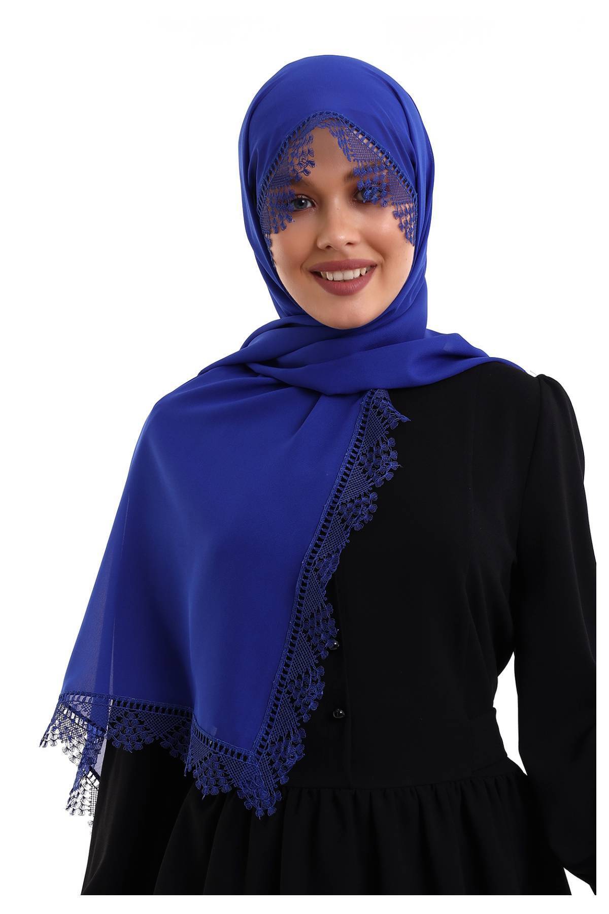 Zarif dantel işlemeleriyle süslenmiş, ev ortamında şıklığı ve rahatlığı bir arada sunan iğne oyalı dantelli eşarp