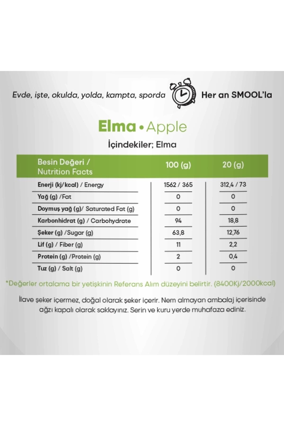 Mevsiminde toplanmış, Freeze Dry teknolojisi ile dondurularak kurutulmuş, koruyucu ve katkı maddesi içermeyen çıtır çıtır elma.