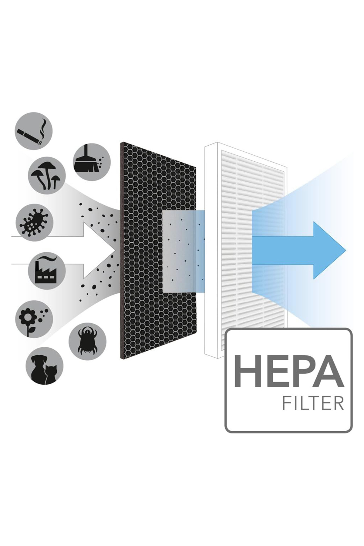 HEPA ve karbon filtre kombinasyonu sayesinde etkili hava temizleme performansı sergiler