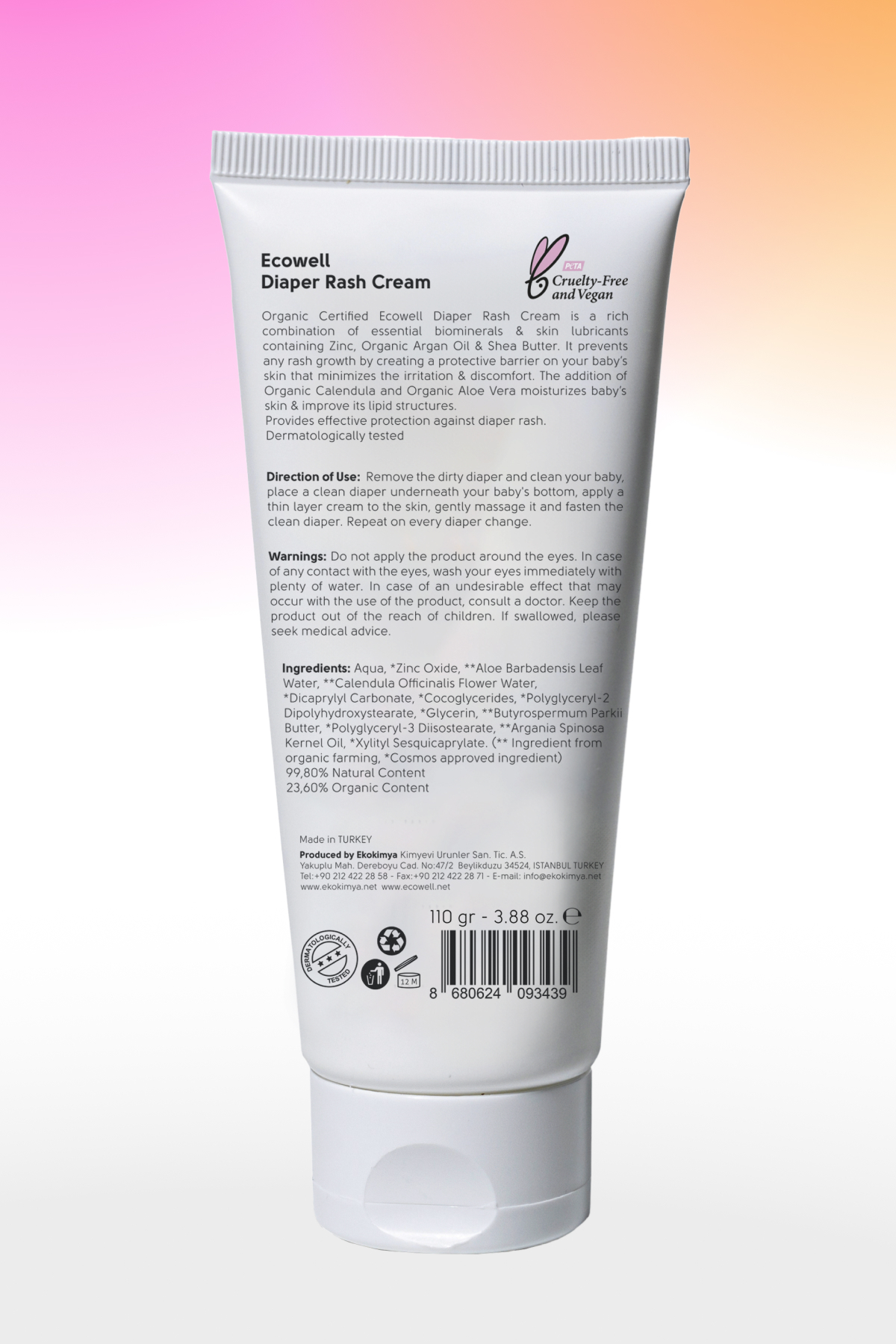 Ecowell Organik Bez Bölgesi Bakım Kremi 110 gr Ürün Adı: Ecowell Diaper Rash Cream 110 gr Ürün Markası: Ecowell Ürün Boyutu: 110 gr Özet Bilgi: Bebek cildinin doğal yapısını koruyarak bakımına yardımcı olur.