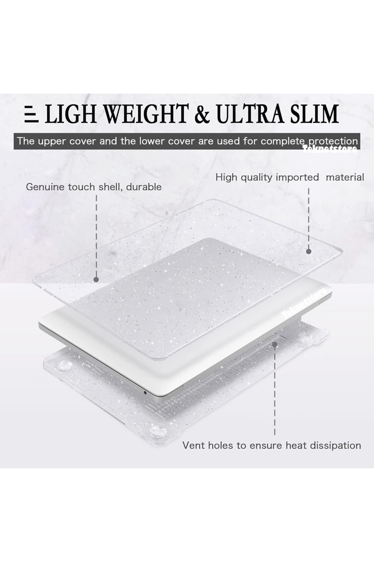 1 Adet Macbook Uyumlu Simli Şeffaf Transparan Alt-Üst Rubber Sert Kılıf