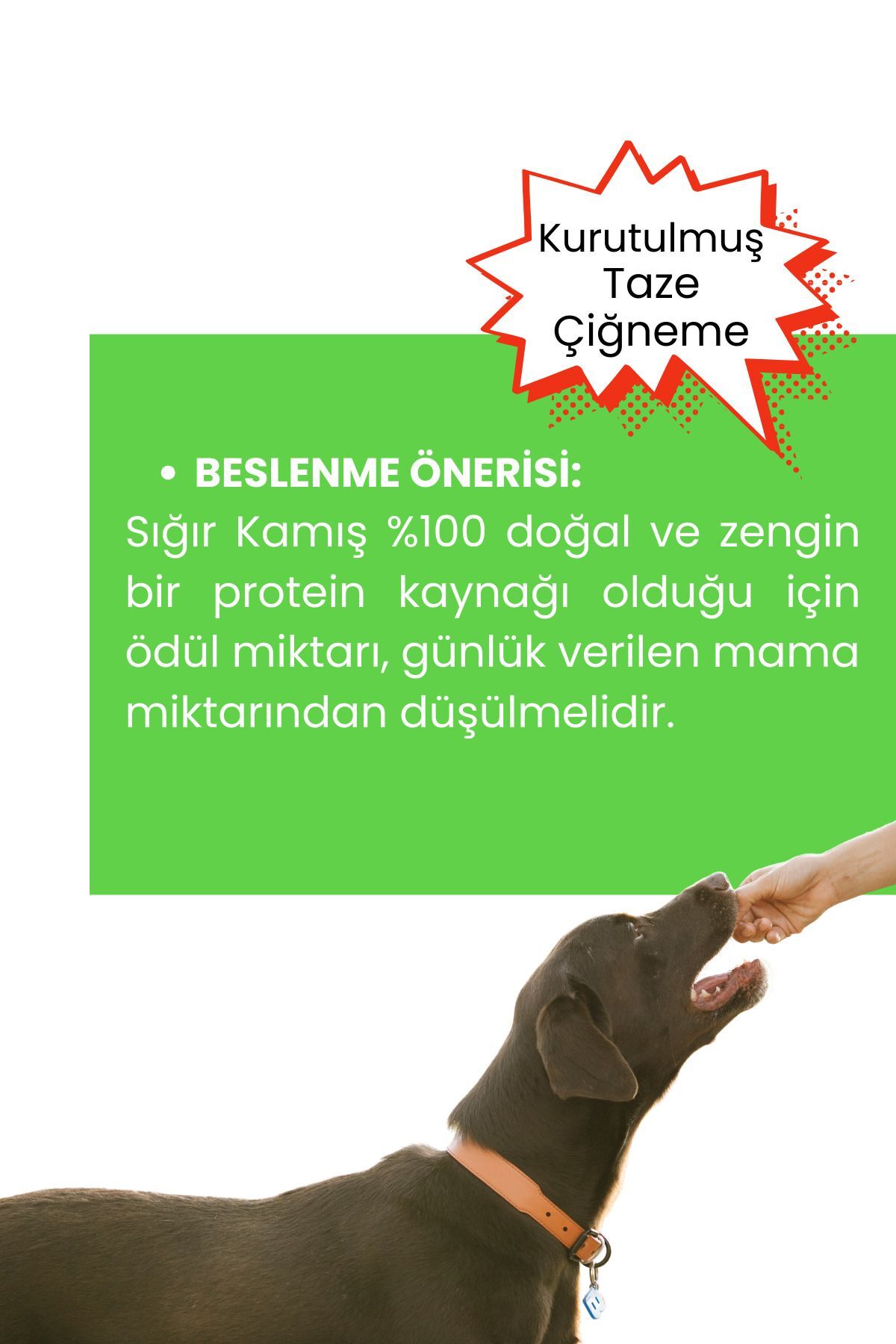 %100 doğal, kurutulmuş et içeriği sayesinde, köpeklerin ilgisini doğal aroması ve lezzetiyle çeker