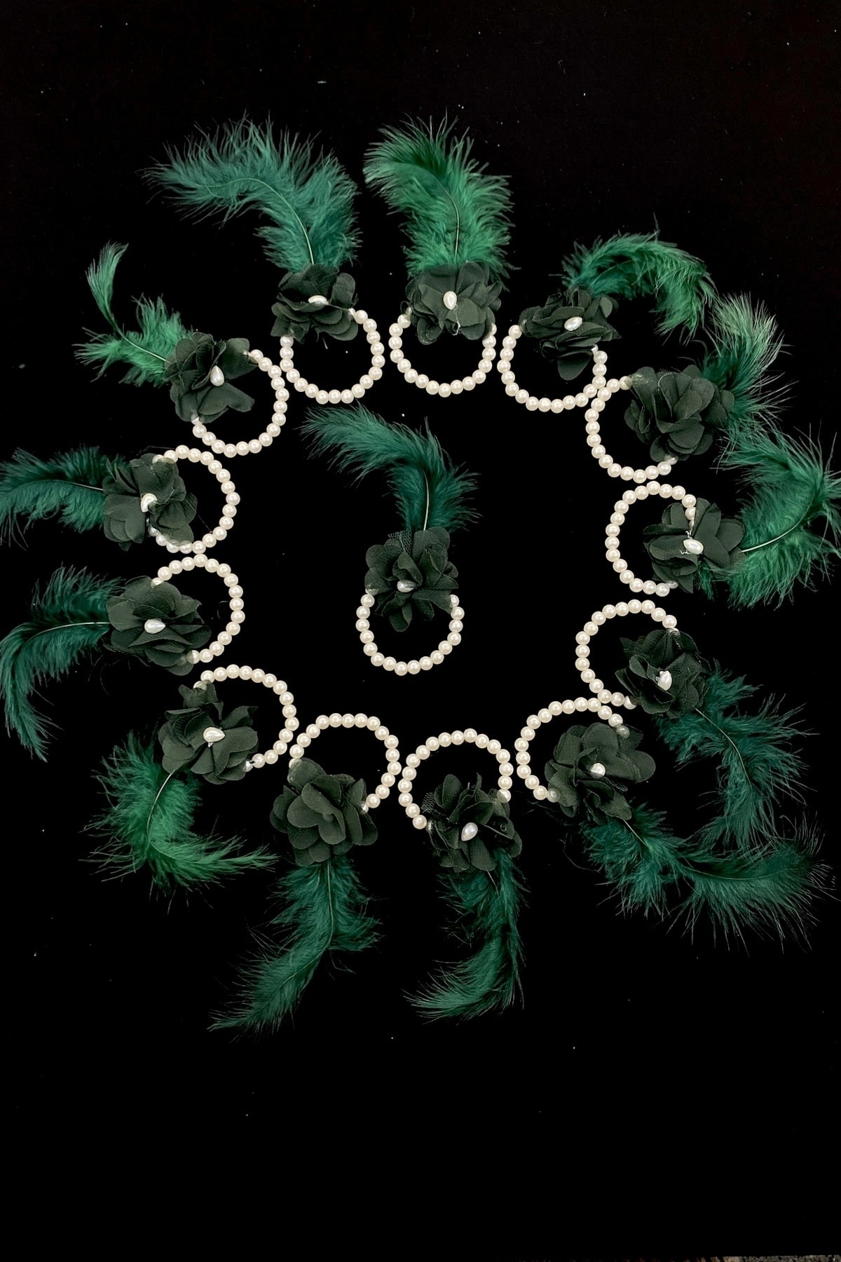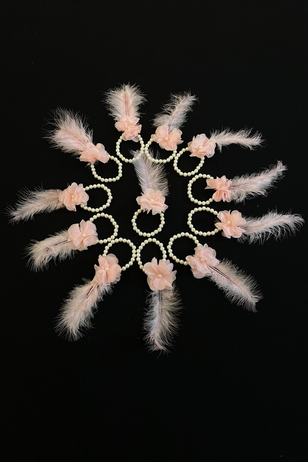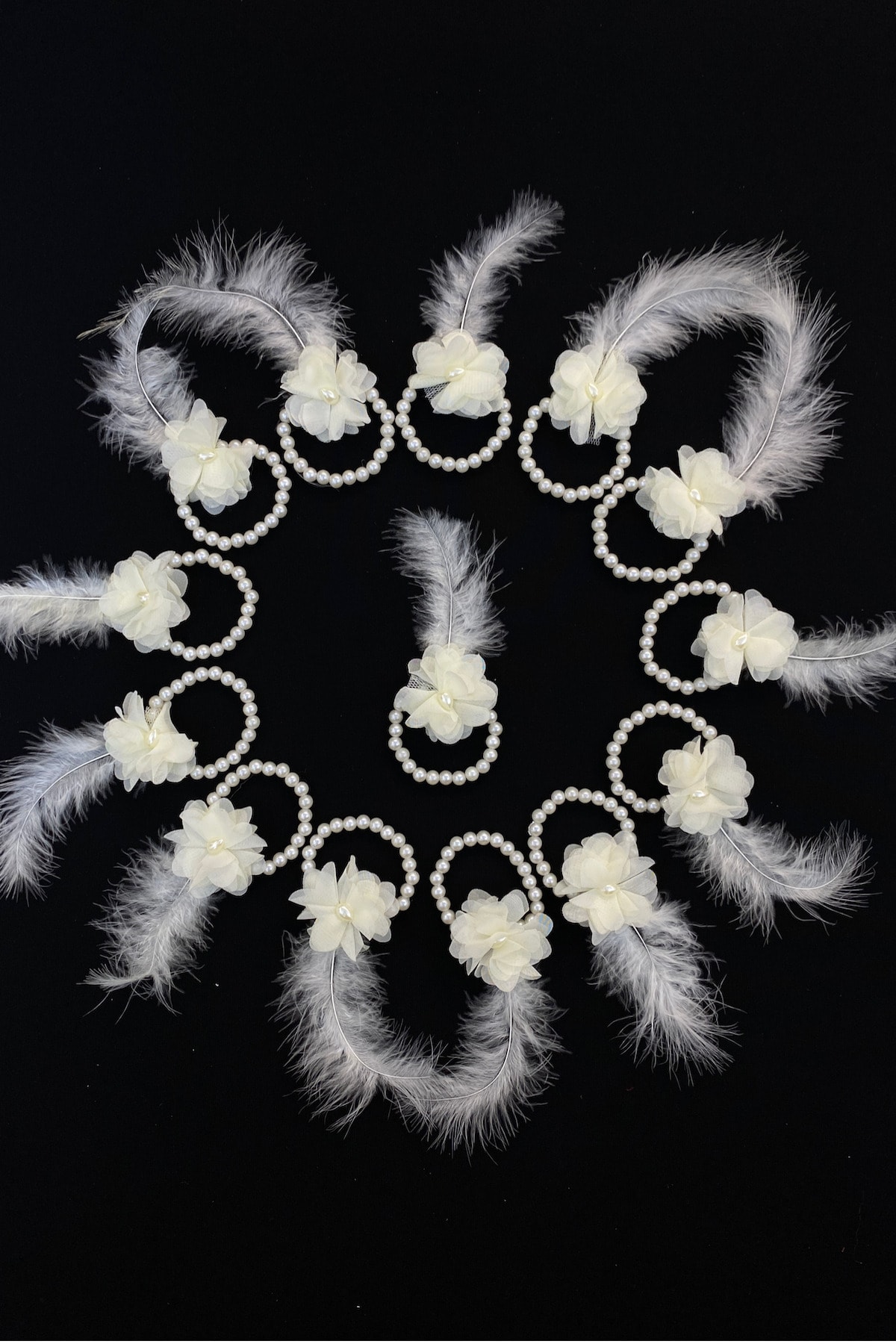 Süslemesi Lazer Kesim Üç Boyutlu Çiçek, İnci ve Tüy Kullanılarak Özel Günleriniz İçin Özenle Tasarlanmış Olup Esnek Misina Kullanılarak Her Bileğe Uygun Olarak Hazırlanmaktadır.