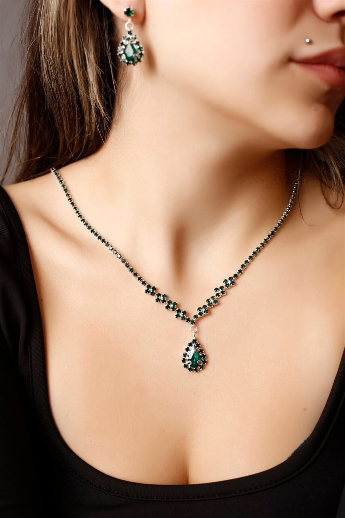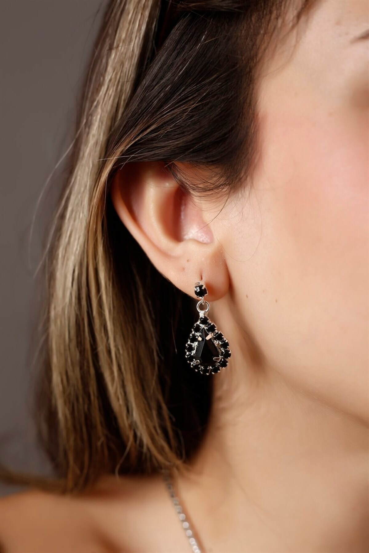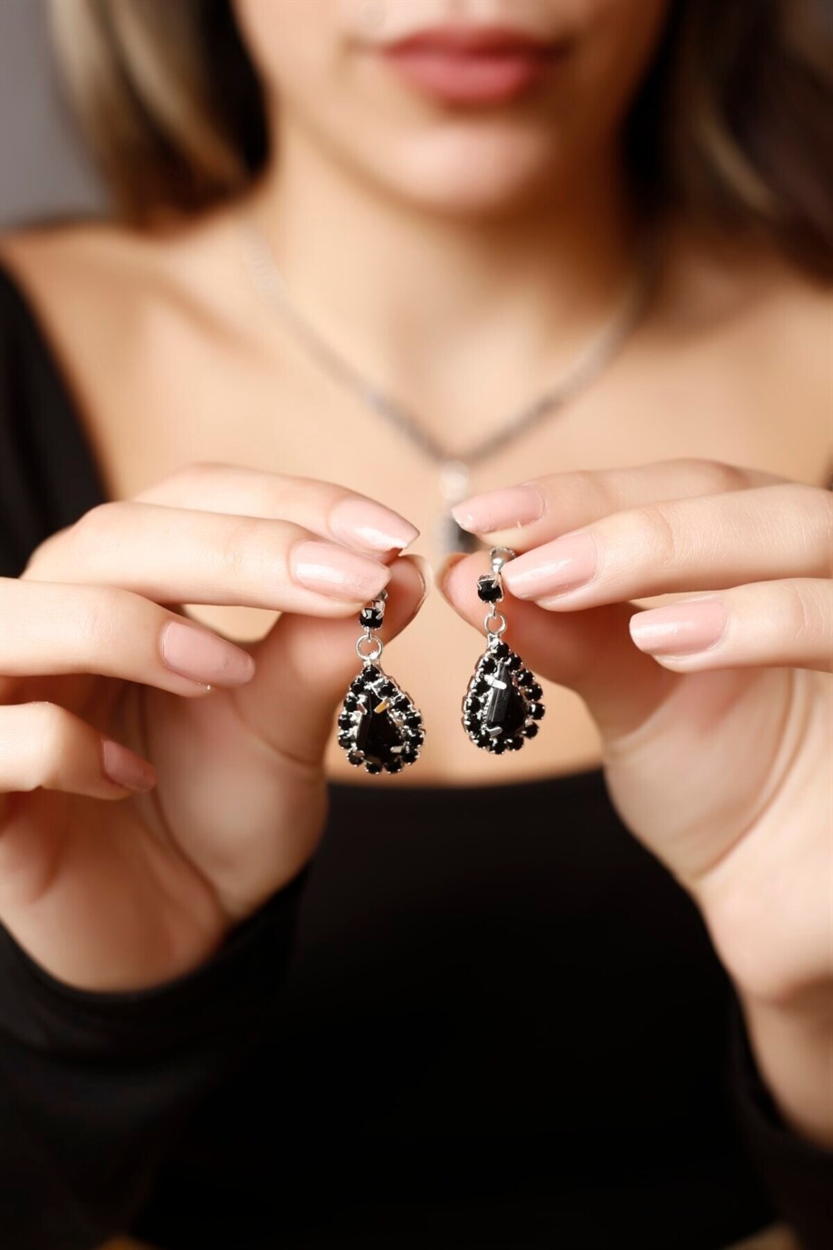 Zarif tasarımıyla göz alıcı bir görünüm sunan siyah su yolu zirkon taşlı kolye küpe seti, özel günlerinizde şıklığınızı tamamlar