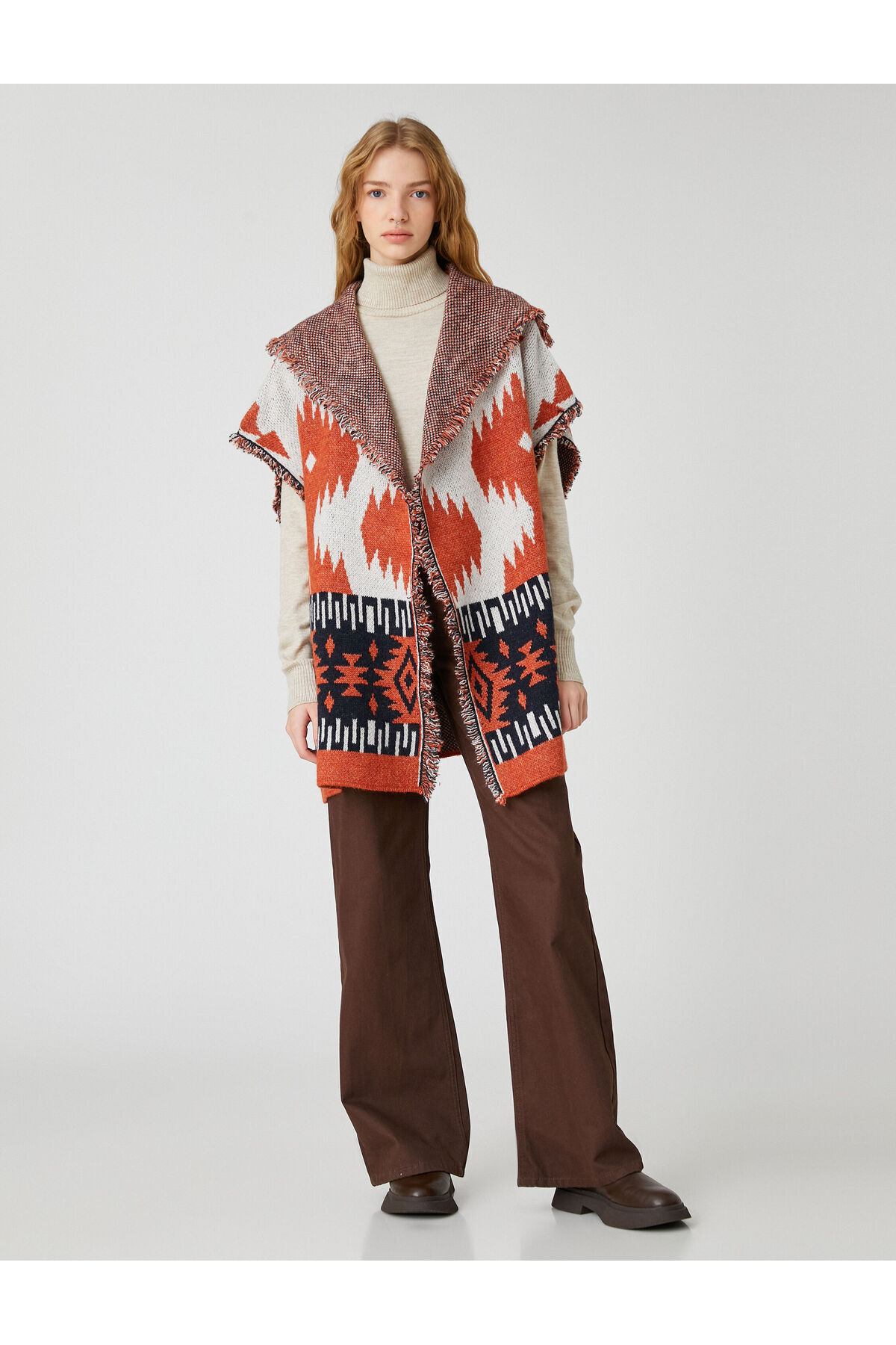 Respect Life - Yaşama Saygı | Rahat kesim, püskül detaylı, etnik desenli panço.