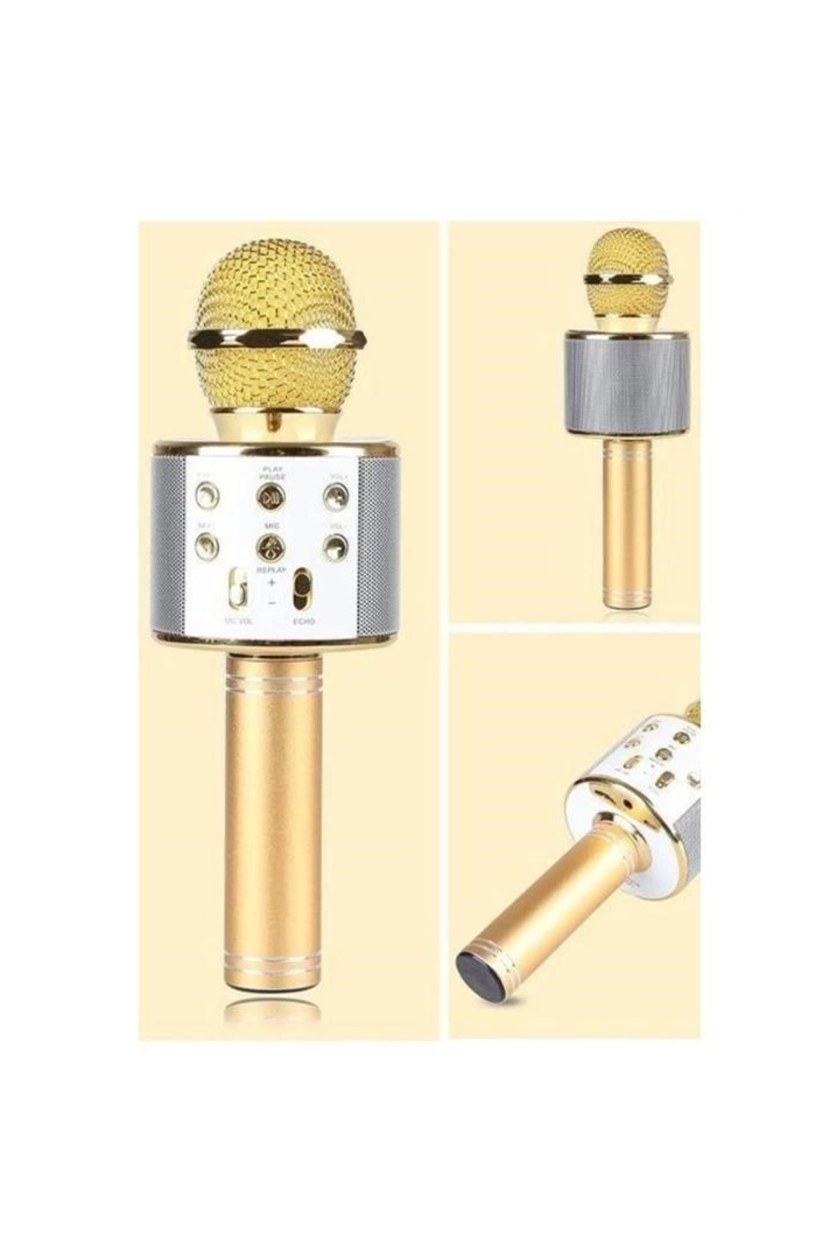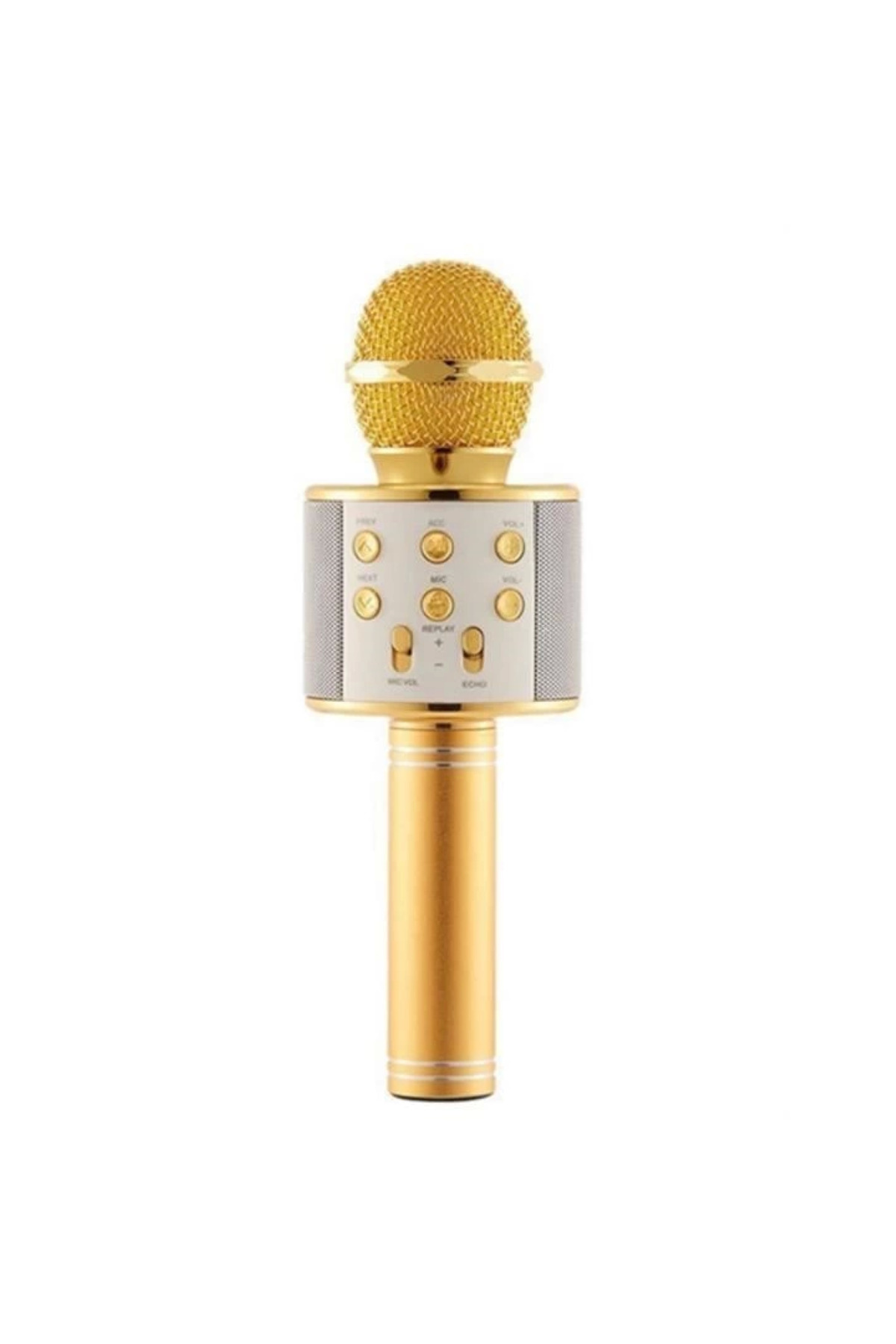 Bluetooth Karekoke Şarkı Söyleme Mikrofonu Gold Altın Özellikleri Bluetooth,SD Kart Girişi, FM Radyo, telefon görüşmesi, Bass Tizz ses eko ayarı.