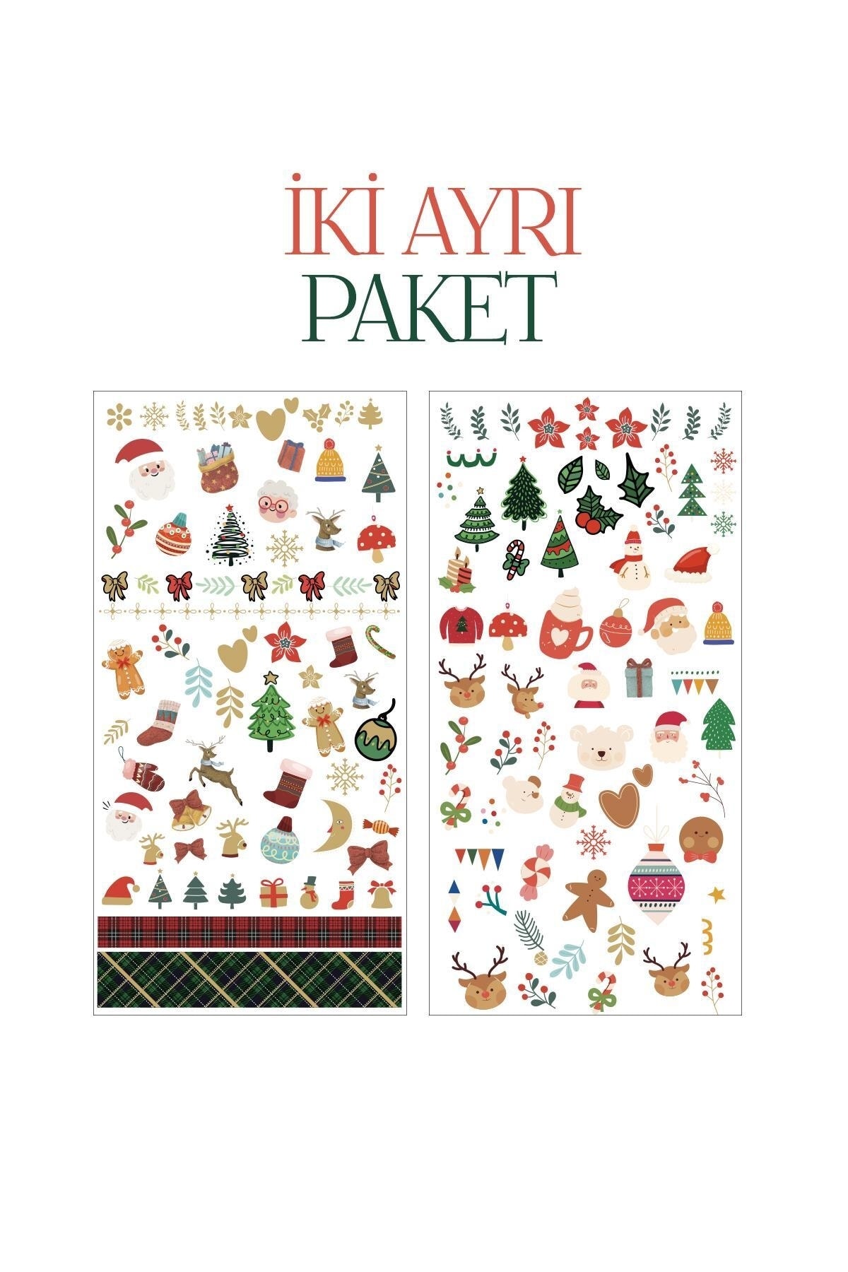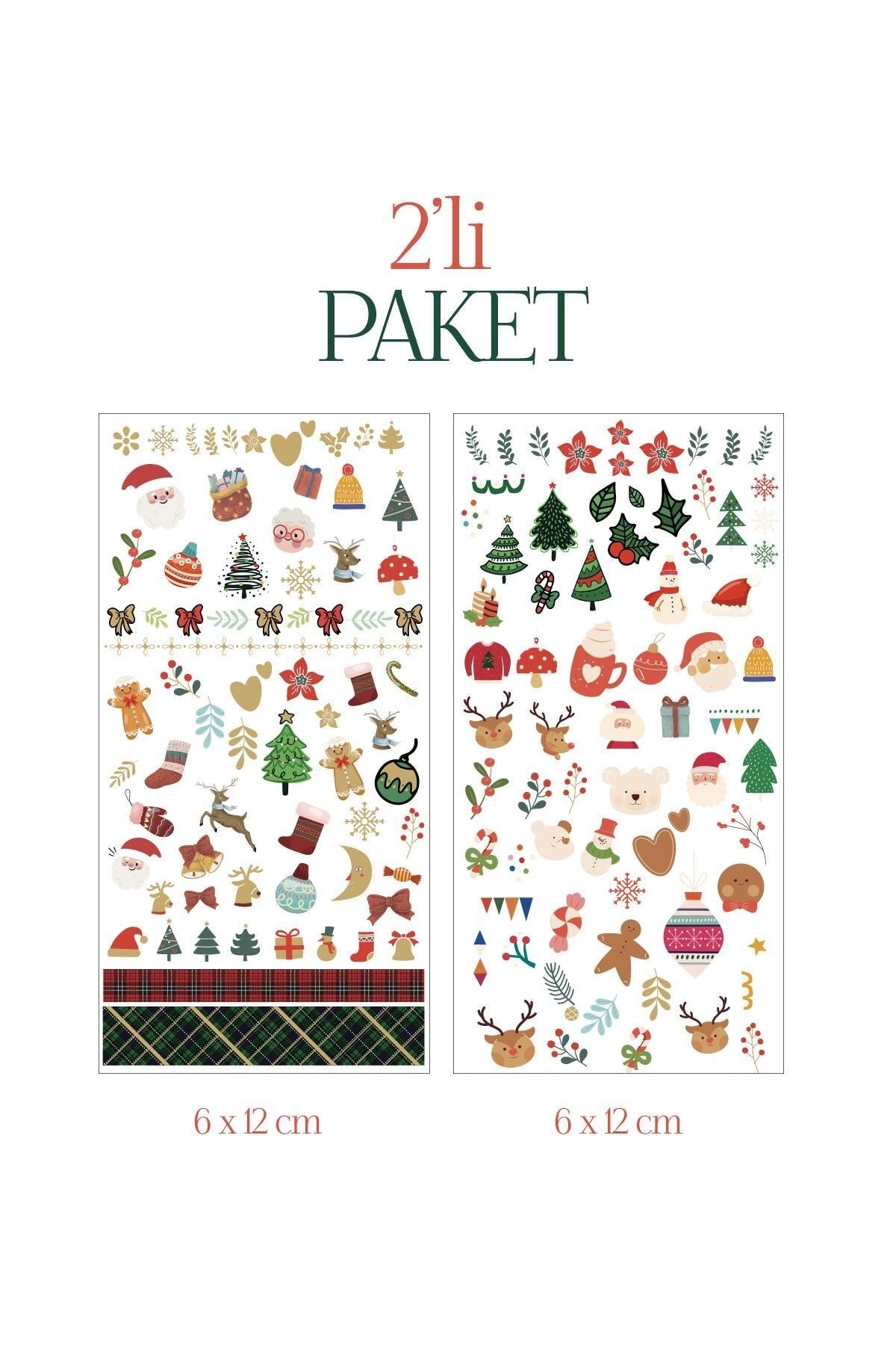 Flash Tattoos® Yılbaşı Noel Christmas Desenler Çok Renkli Modern Tırnak Çıkartmaları Tırnak Dövmesi SETİ 2 PAKET