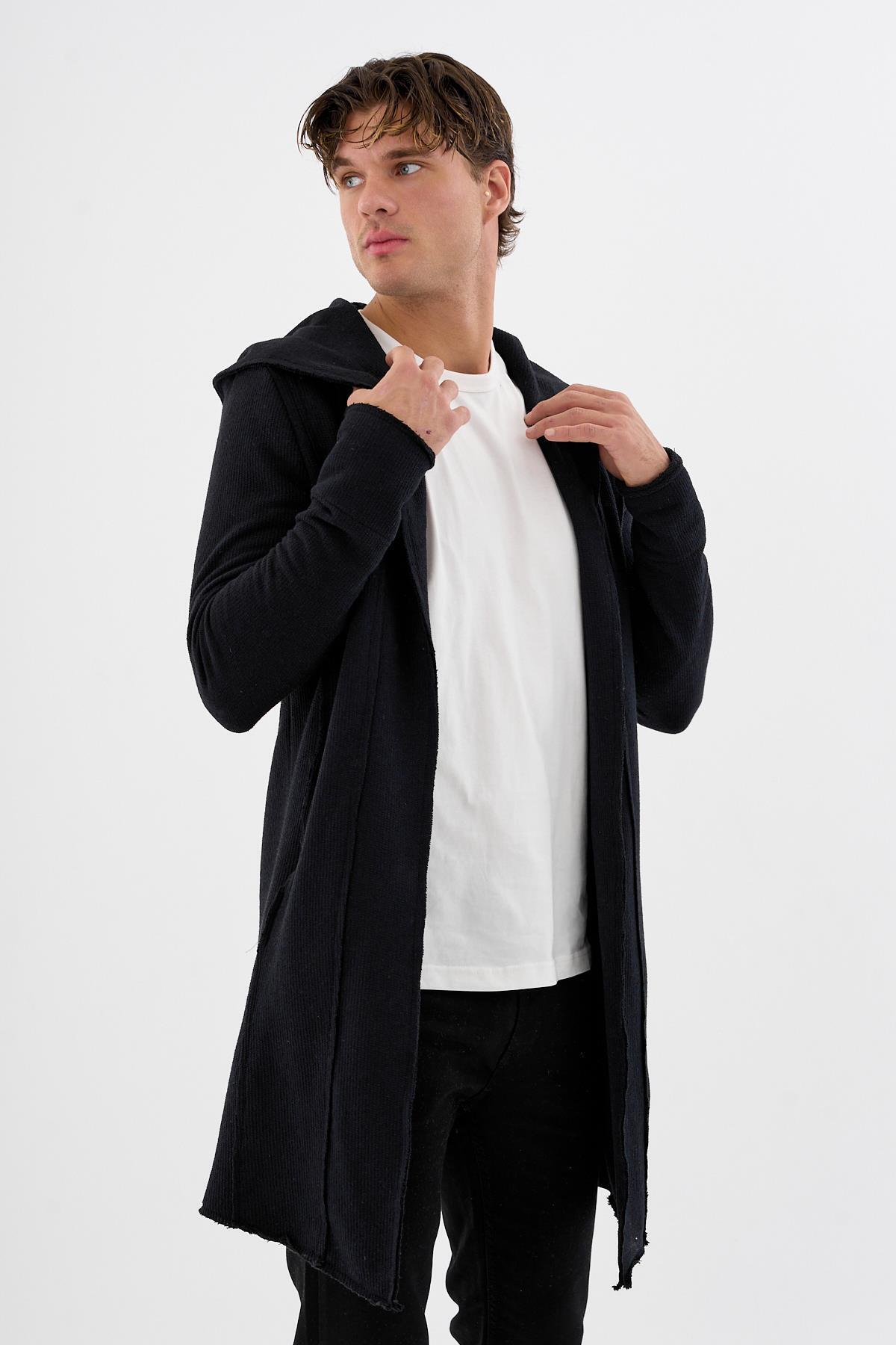 Öne Çıkan Ürün Özellikleri Uzun kapüşonlu form – modern ve salaş duruş Dokulu örme kumaş – premium görünüm Sürdürülebilir Recycle Fabric %50 Cotton – %50 Polyester karışımı Yumuşak, esnek, nefes alan yapı Cepli rahat tasarım Mevsim geçişlerine ve serin havalara ideal Gündelik, spor ve smart-casual tarzlara uyumlu Tüylenme yapmayan özel örme yüzey Hafif ve konforlu üst katman Trend uzun tasarım (mid-length)