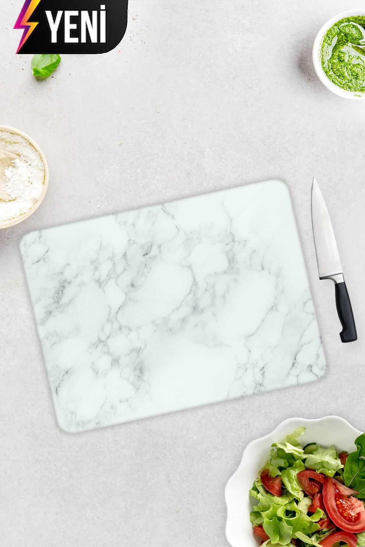 Klasik Mermer Desenli | Cam Kesme Tahtası - Cam Kesme Tablası | 30cm x 40cm