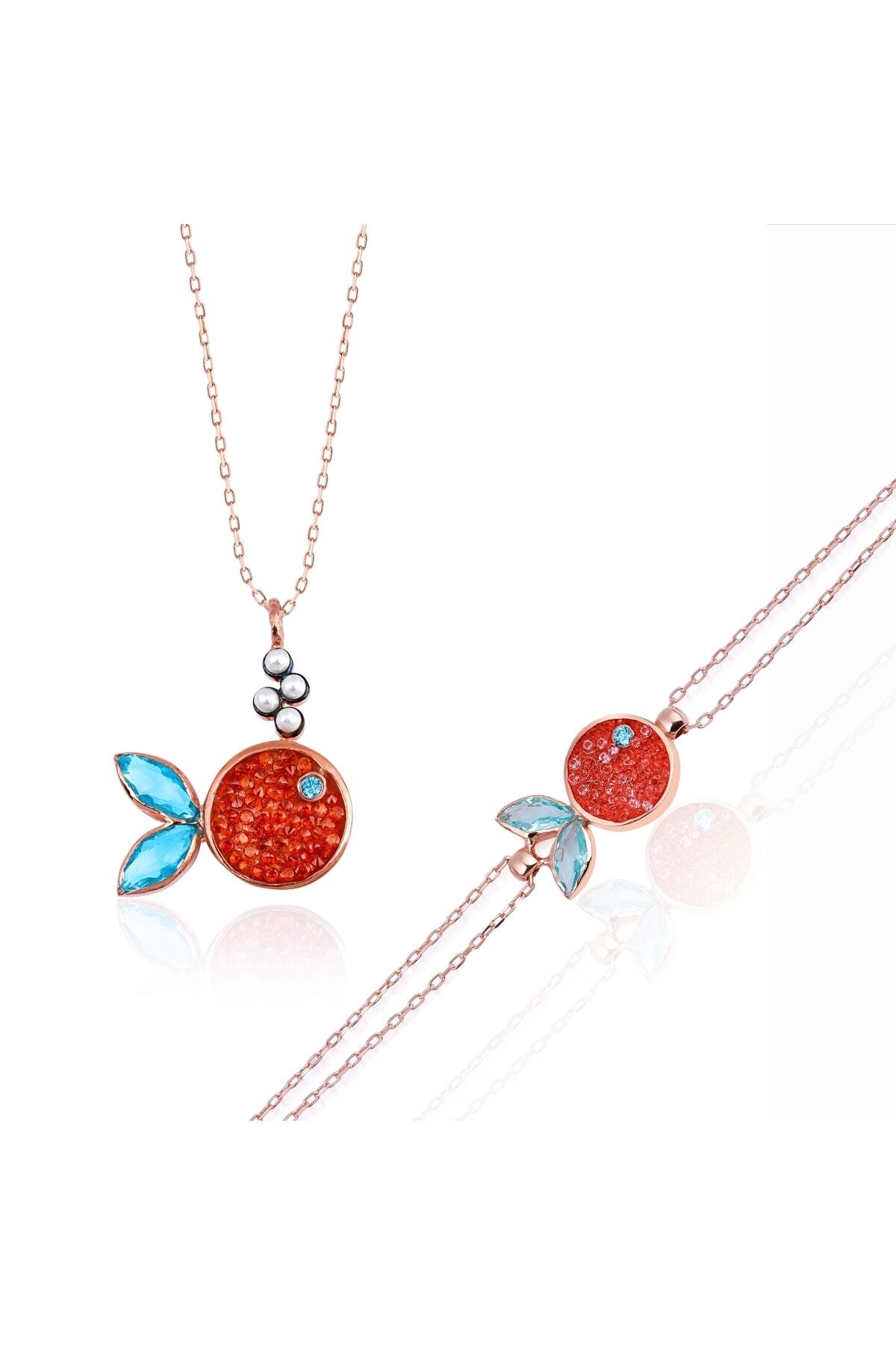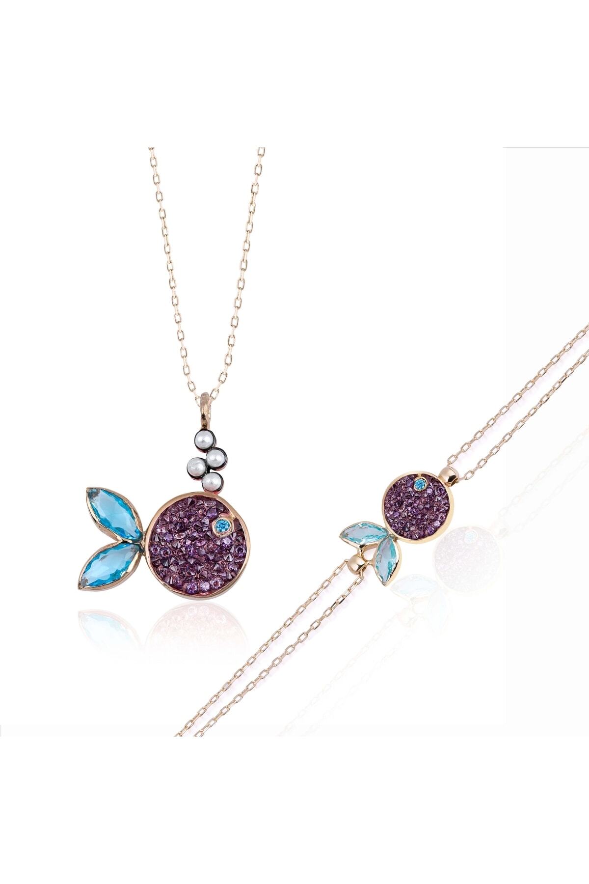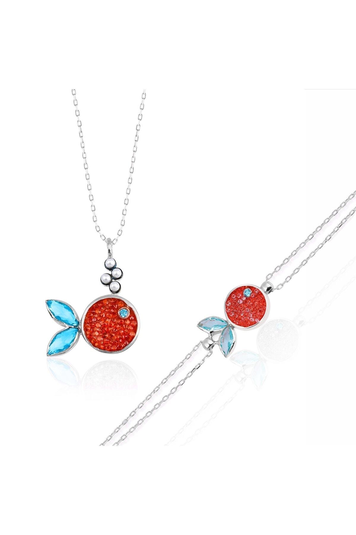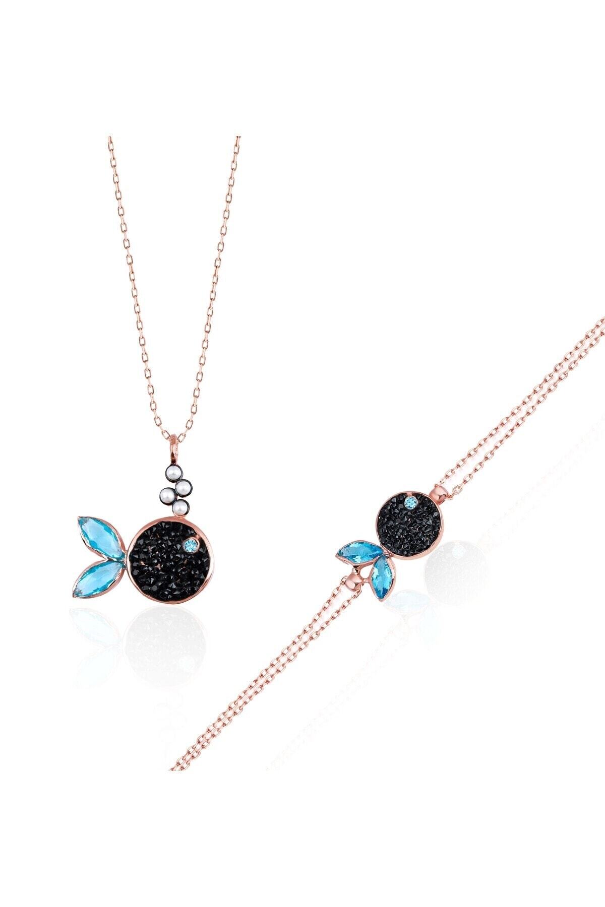 Perla blue topaz detaylı doğal taşlı balık gümüş set, sevdikleriniz için anlamlı bir hediye seçeneği olarak da değerlendirilebilir.