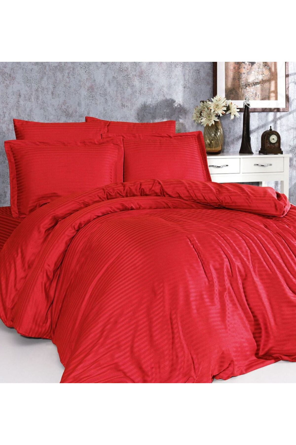 %100 Pamuk Saten Nevresim Takımı Nevresim 200x220 cm + Lastikli Carsaf 160x200 + Yastik kilifi 50x70 2 Adet