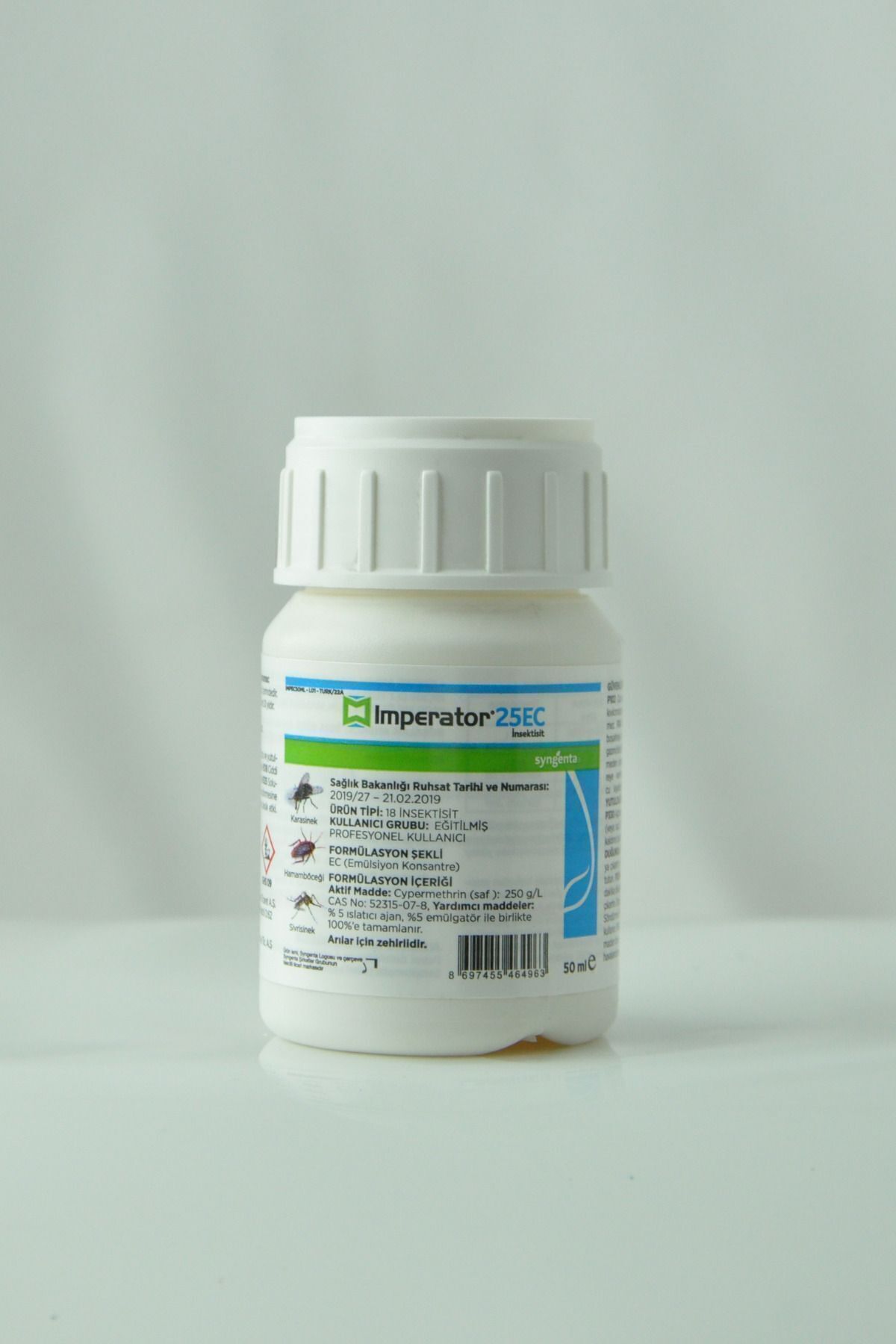 IMPERATOR 25 EC SAĞLIK BAKANLIĞINDAN RUHSATLI İNSAN SAĞLIĞINA VE ÇEVREYE ZARARSIZ KARASİNEK ,SİVRİSİNEK VE HAMAMBÖCEĞİ HAŞERELERİYLE MÜCADELEDE KESİN SONUÇ VEREN CYPERMETHRİN ETKEN MADDELİ EMÜLSİYON KONSANTRE ( EC ) FORMÜLASYONLU İNSEKTİSİTTİR.