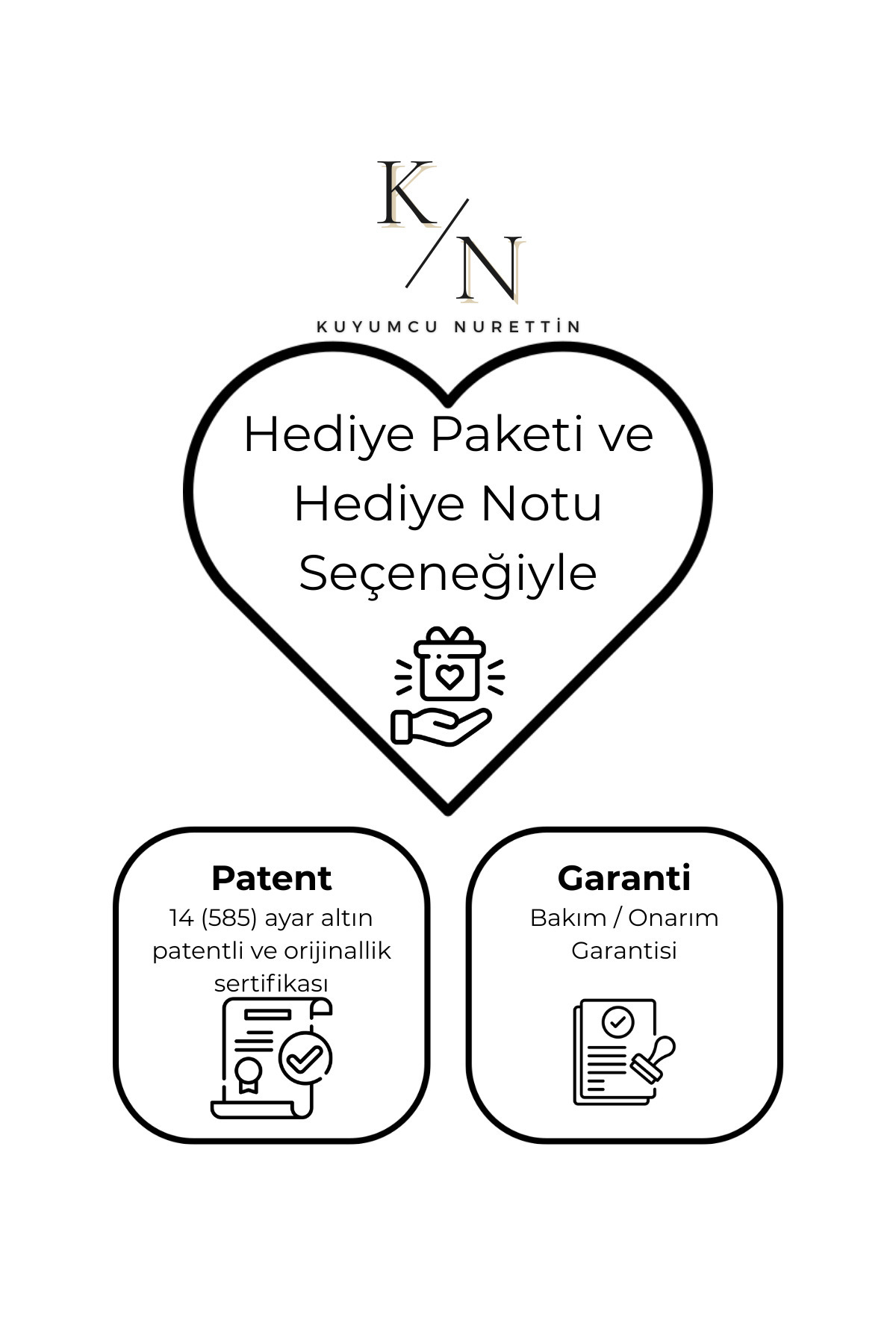 -14 ayar altın malzemesiyle üretilmiş, uzun ömürlü ve kaliteli bir aksesuar deneyimi sunar.