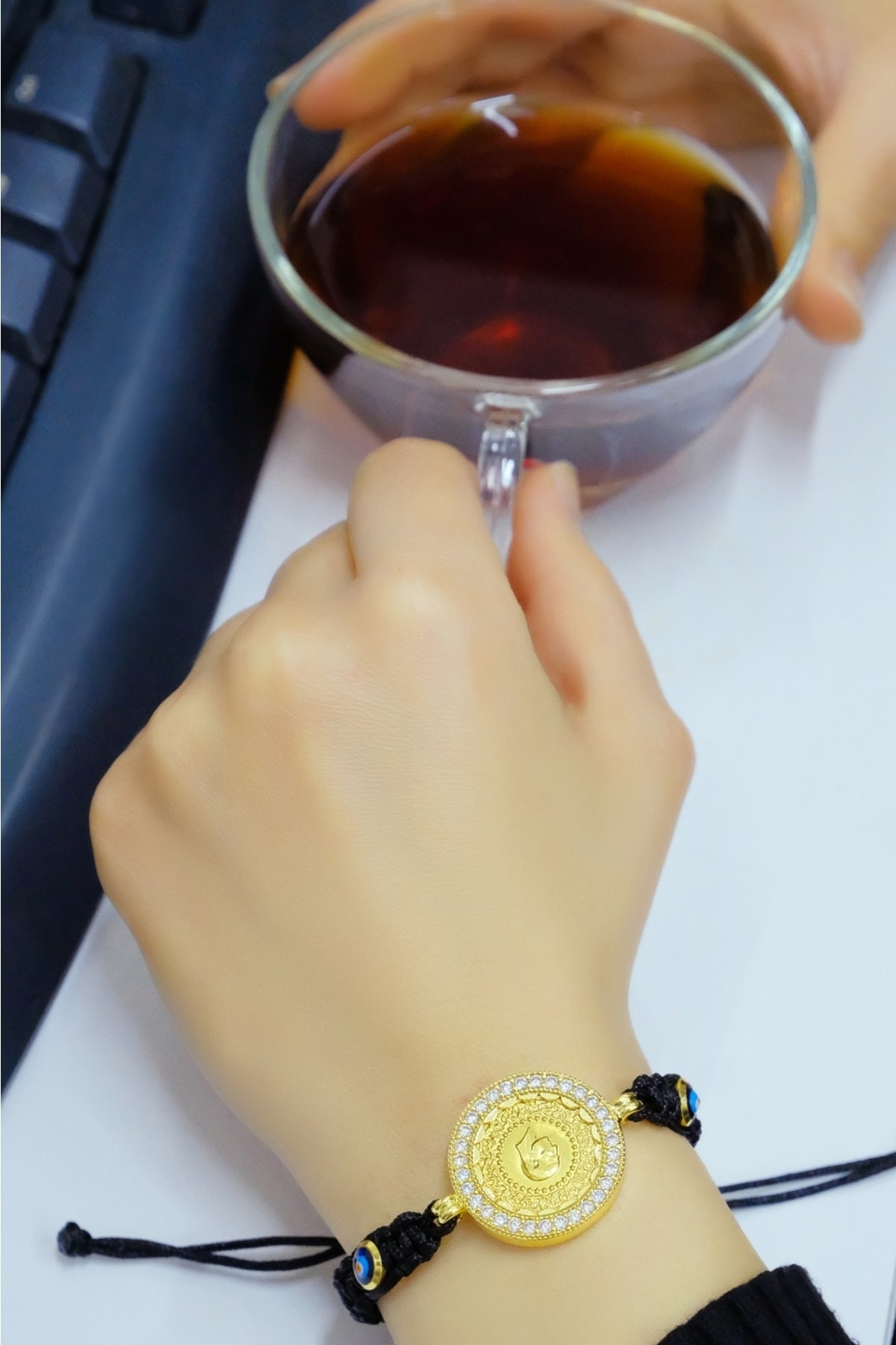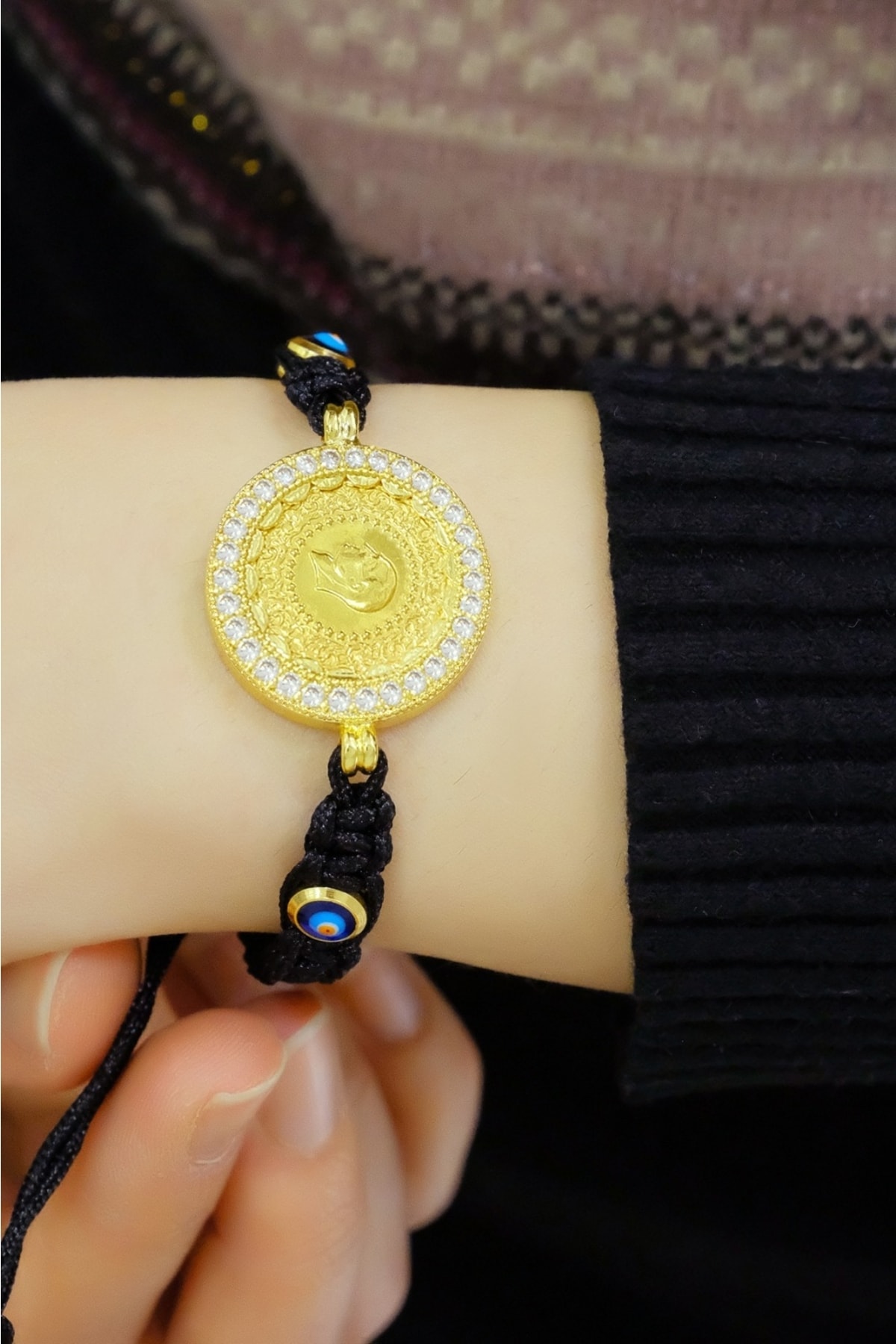 - Zarif tasarımıyla dikkat çeken çeyrekli nazar boncuklu ıpli bileklik, şıklığınızı tamamlar