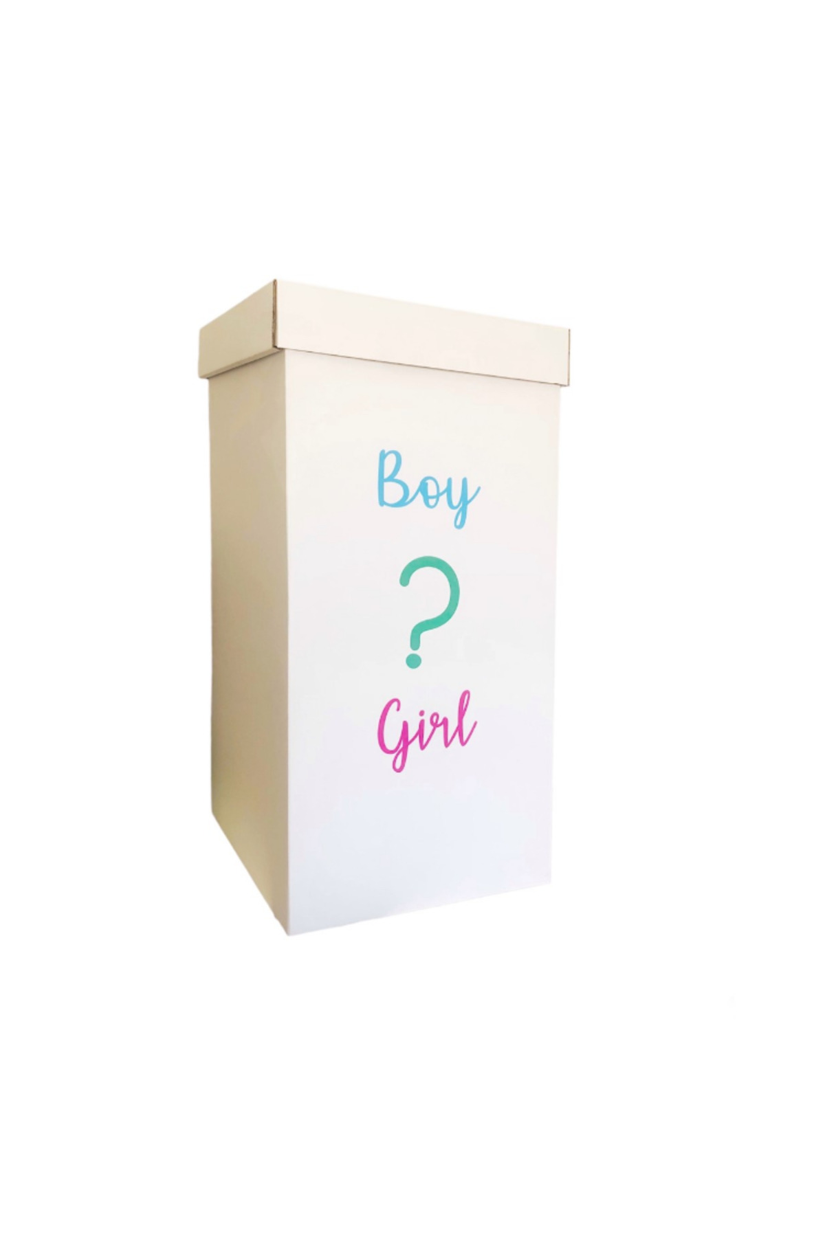 Kutu ebatları: 52x52x100 cm Bebek cinsiyet belirleme parti temalı kutumuz sevdiklerinizle heyecanınızı paylaşabileceğiniz, içerisine bebeğinizin cinsiyetine göre balonlar, konfetiler koyabileceğiniz özel bir kutudur.