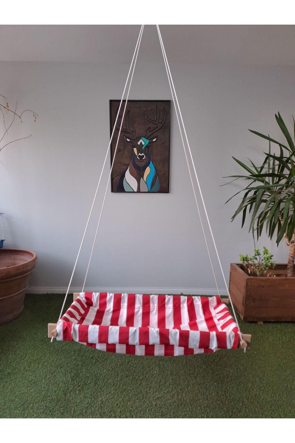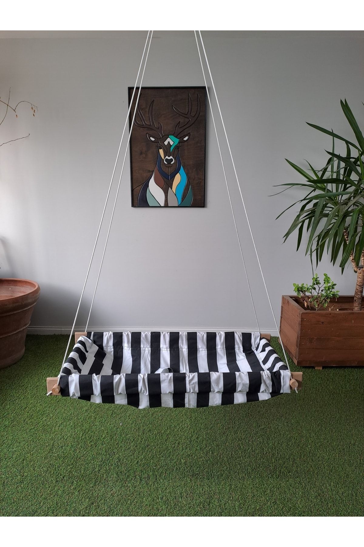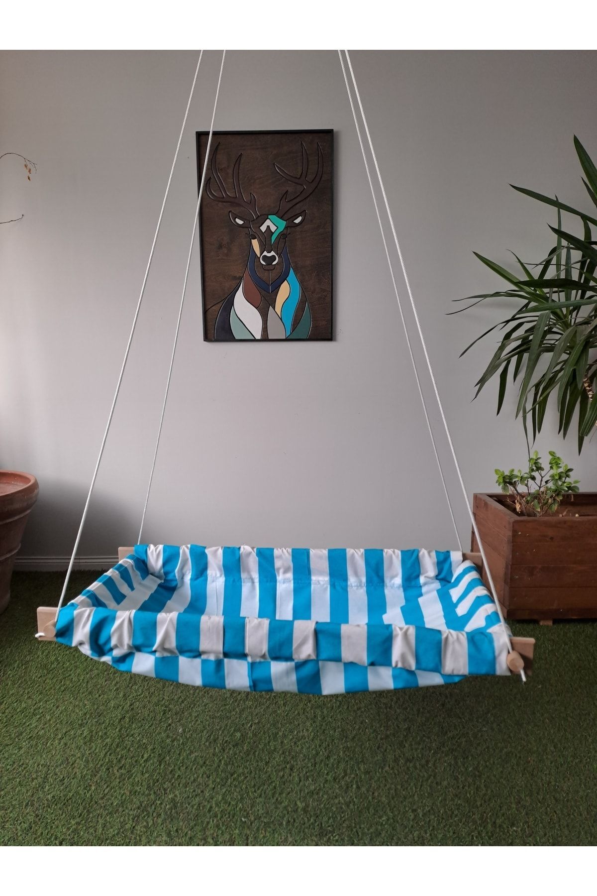 Ahşap kenarlı yaylı zıpzıp bebek hamak kumaş kısımlar %100 Pamuk Gabardindir ve yıkanabilir