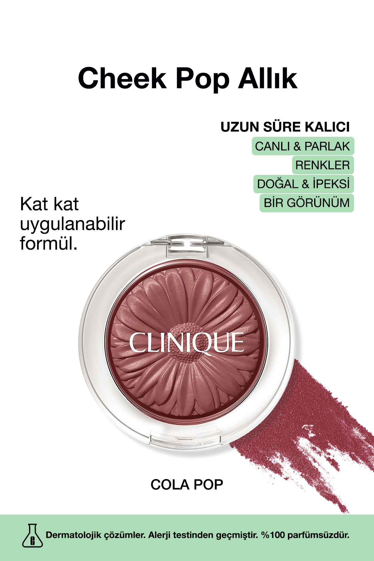 Ne İşe Yarar? Canlı ve doğal görünümlü allık sayesinde yanaklarınızda ipeksi bir görünüm elde edebilirsiniz.