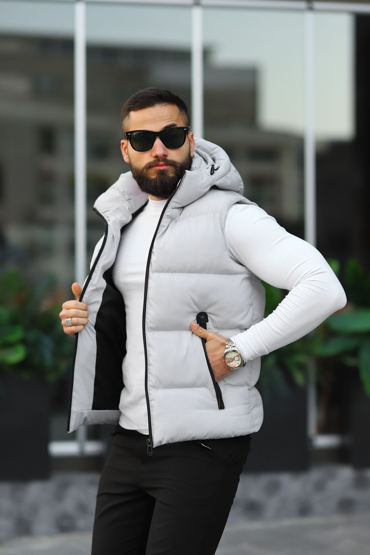 Düz tasarımıyla sade ve şık bir görünüm elde edilirken, slim fit kalıbı modern bir siluet çizer