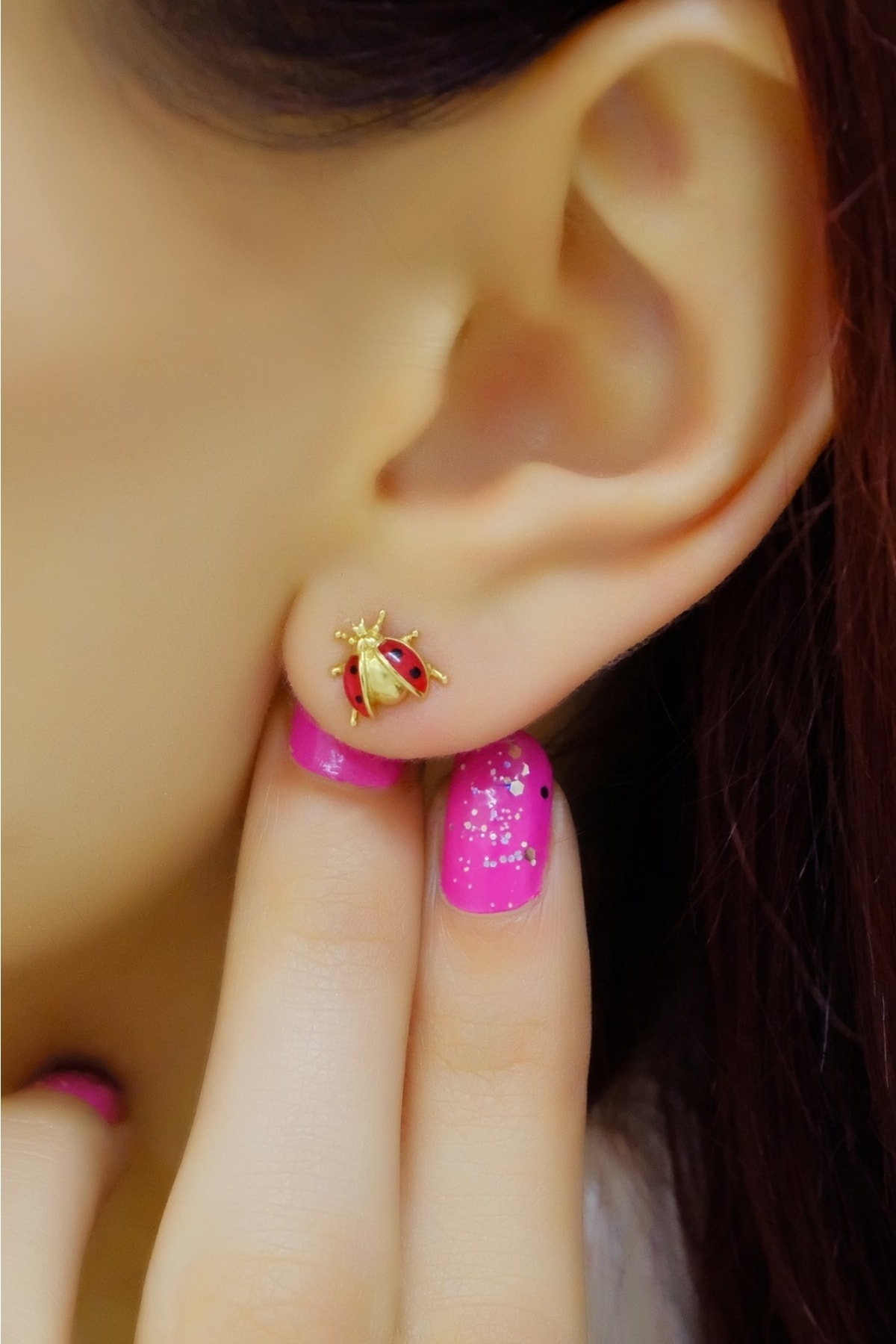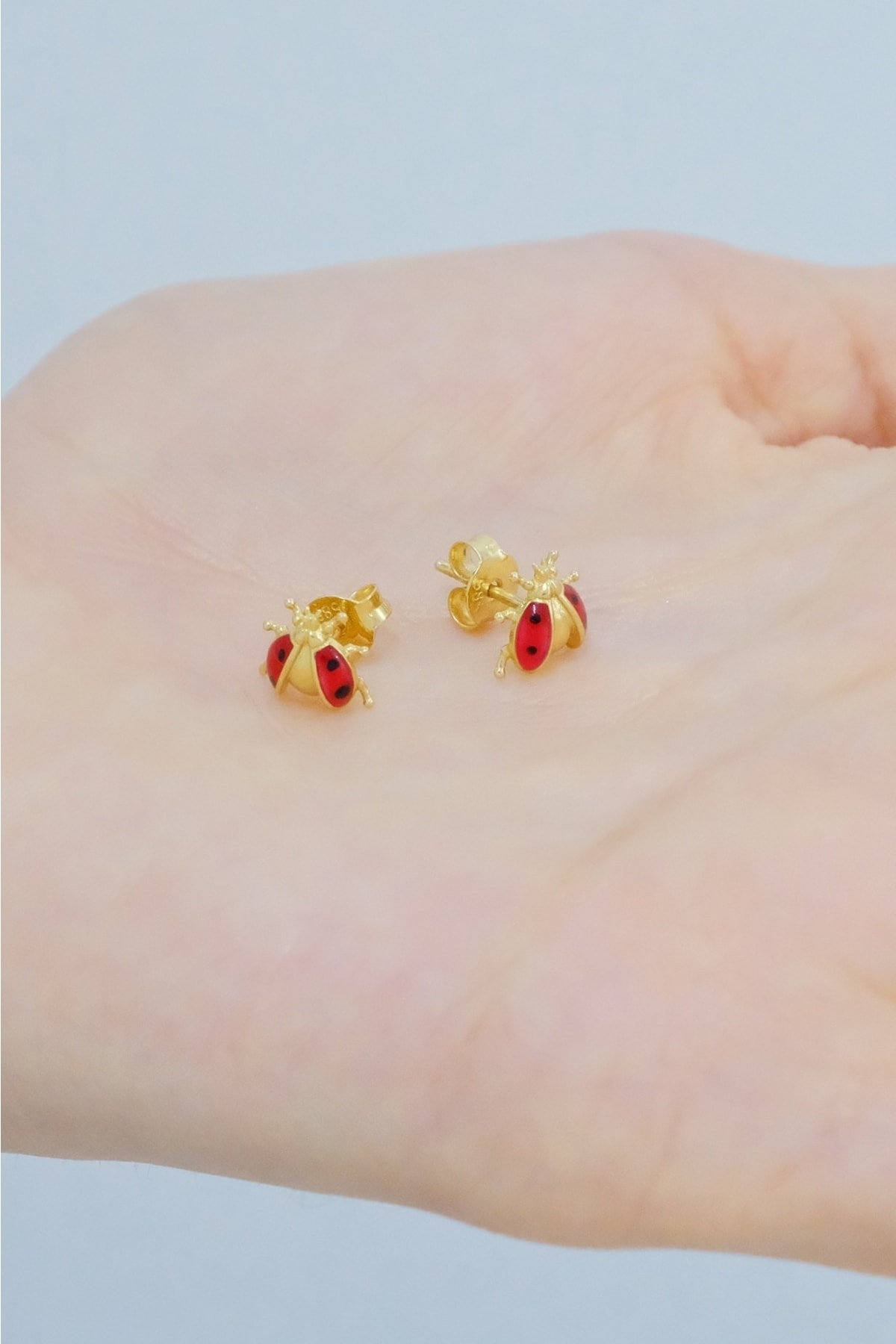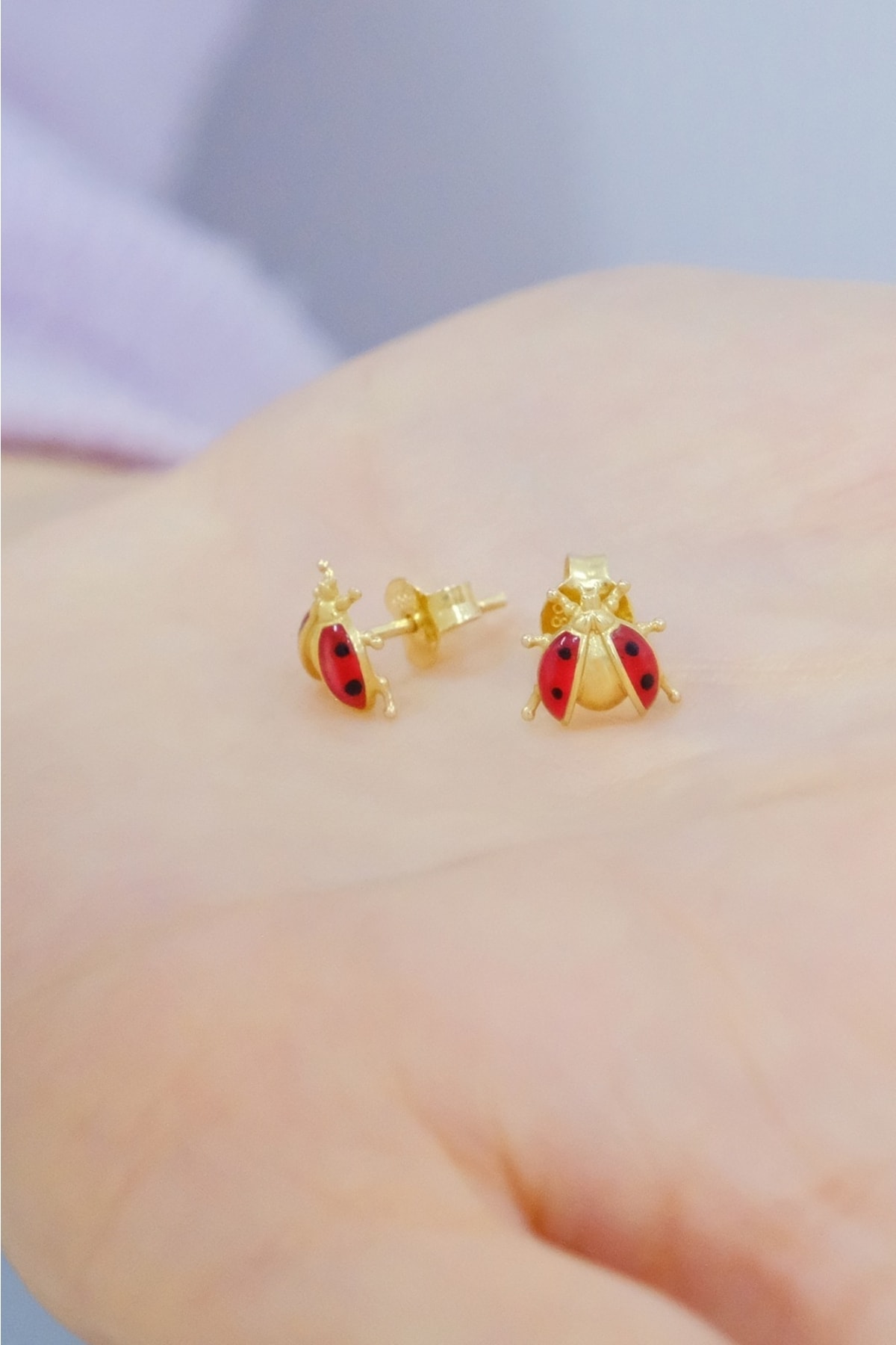Uğur böceği küpe - Ürün 14 ayar altındır.