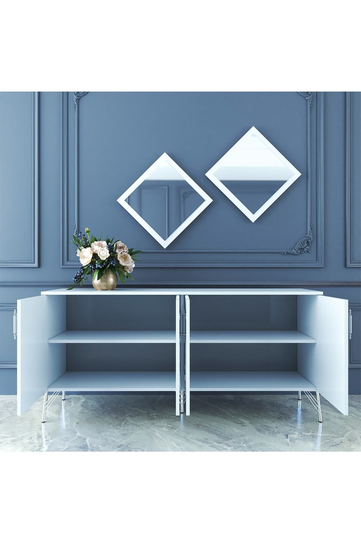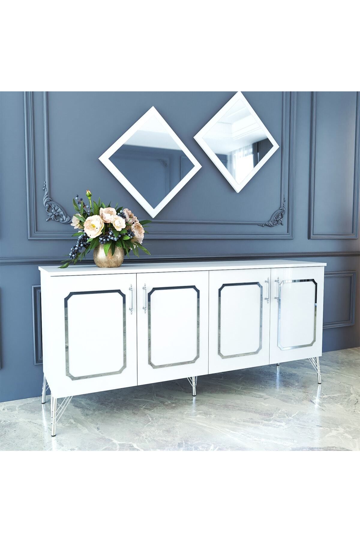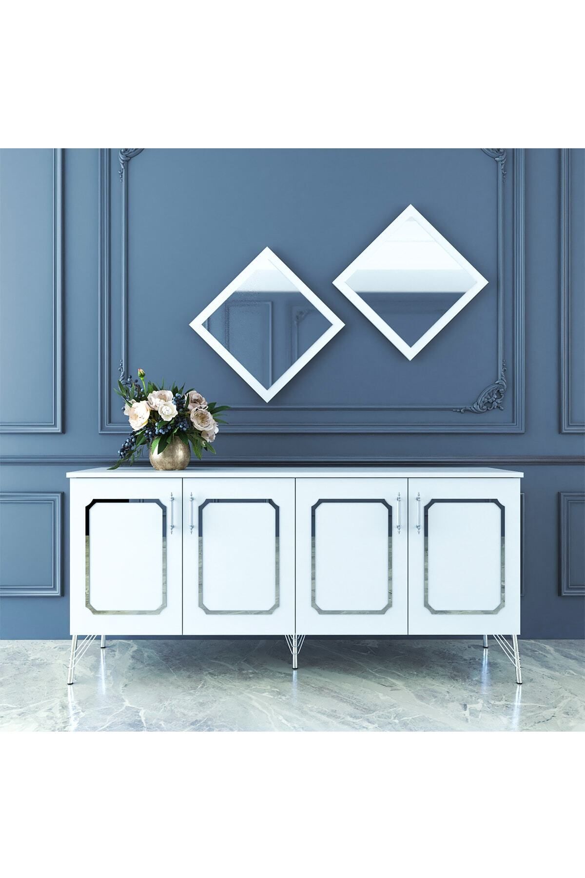 Görselde bulunan konsol üzerindeki 2 adet aynanın bulunduğu plakalar gönderilecek, fakat üzerinde ayna gönderilmeyecektir. Arzu eden müşterilerimiz için yerel imkanlar ile ayna taktırmaları tavsiye olunur.