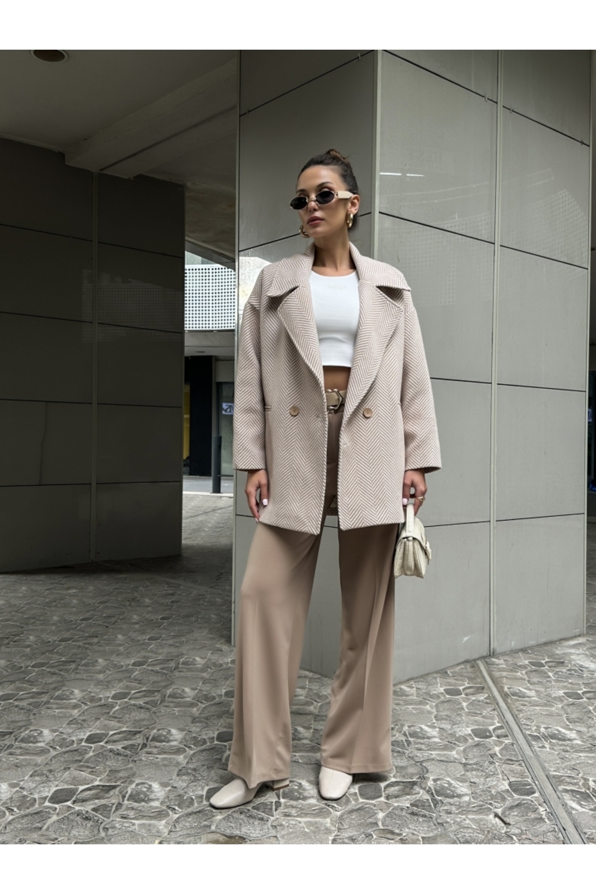 Ceket yakası ile klasik ve zamansız bir stil sunarken, düz kesimiyle modern bir hava katmaktadır