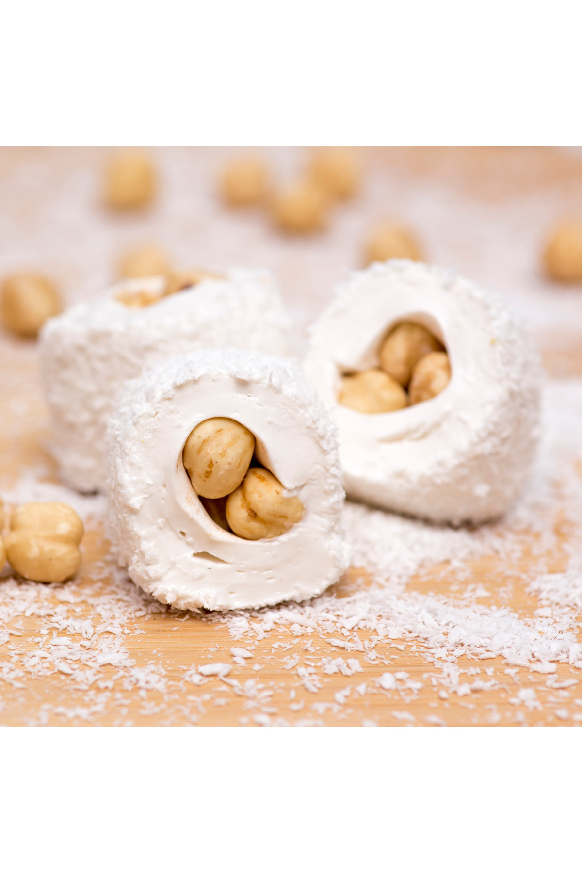SULTAN FINDIKLI SARMA LOKUM İçindekiler: Toz şeker, Fındık (%15), Mısır Nişastası, Hindistan Cevizi, Çöğen Suyu, Asitlik Düzenleyici (Sitrik Asit), Doğal Aroma Verici (Vanilin)