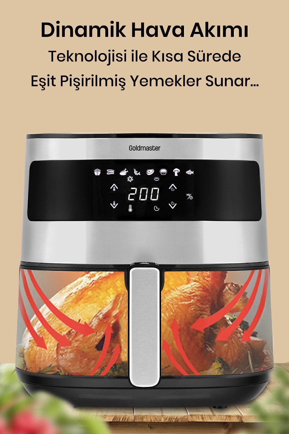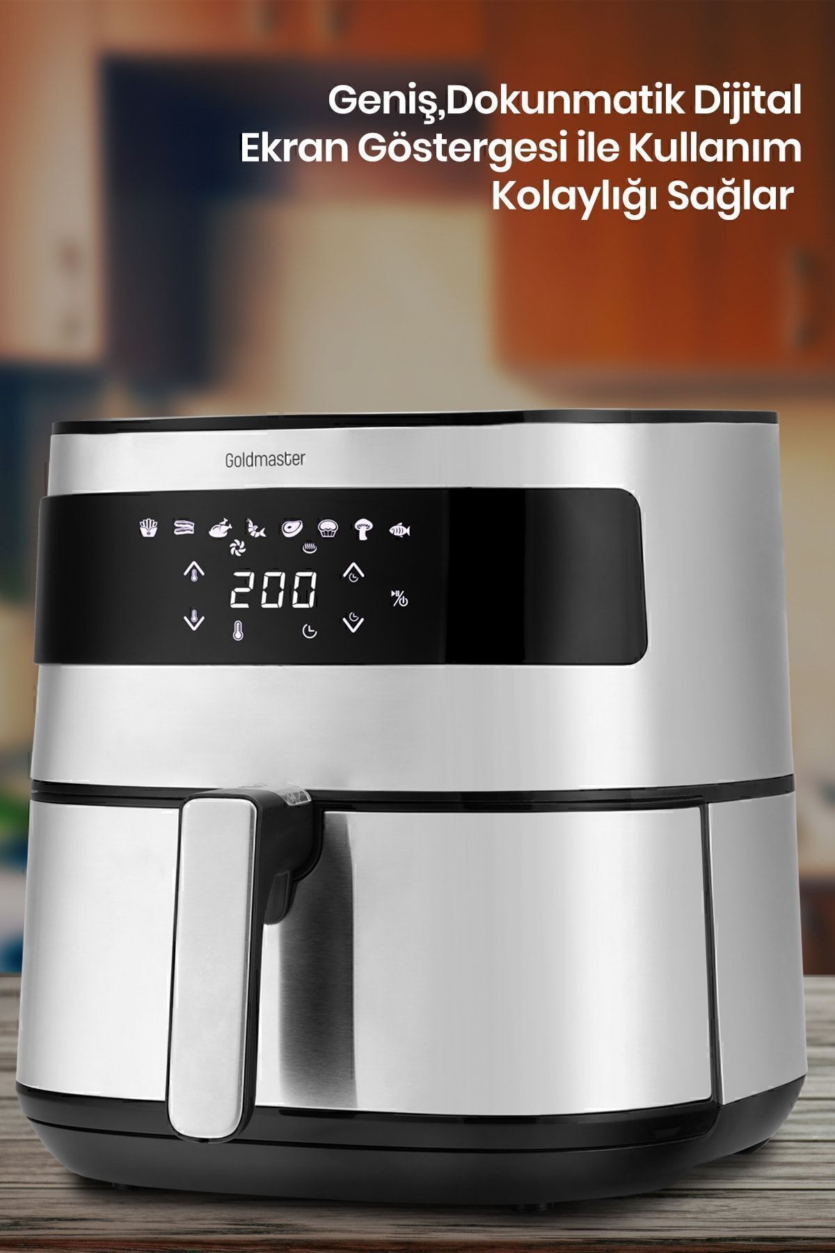 Premio 2000 Watt Yüksek Güç 6,4 Litre Inox Geniş Xxl Dokunmatik Airfryer Yağsız Sıcak Hava Fritözü