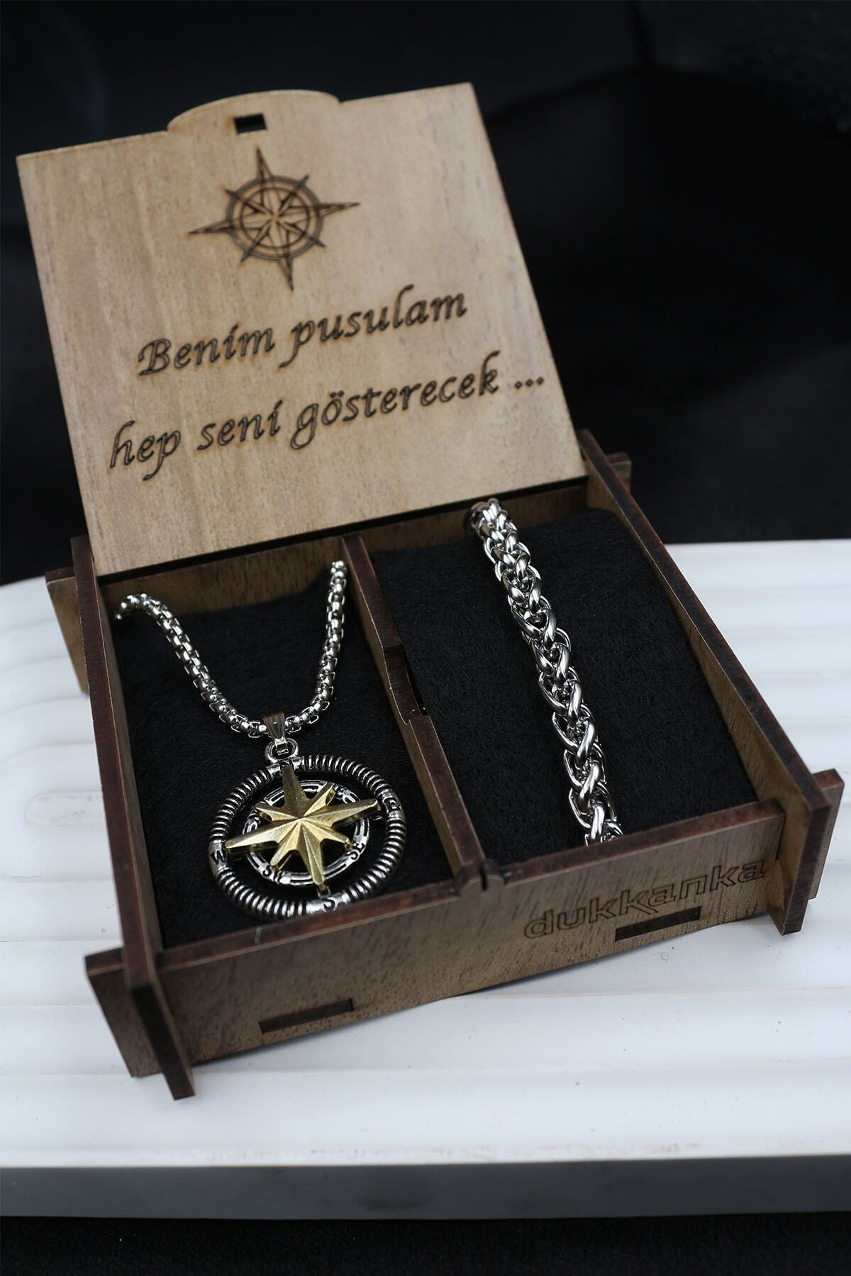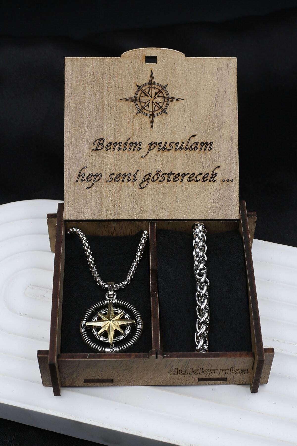 Pusula kolye ve angelus bileklikten oluşan 2'li set, hem günlük kullanım hem de özel günler için ideal