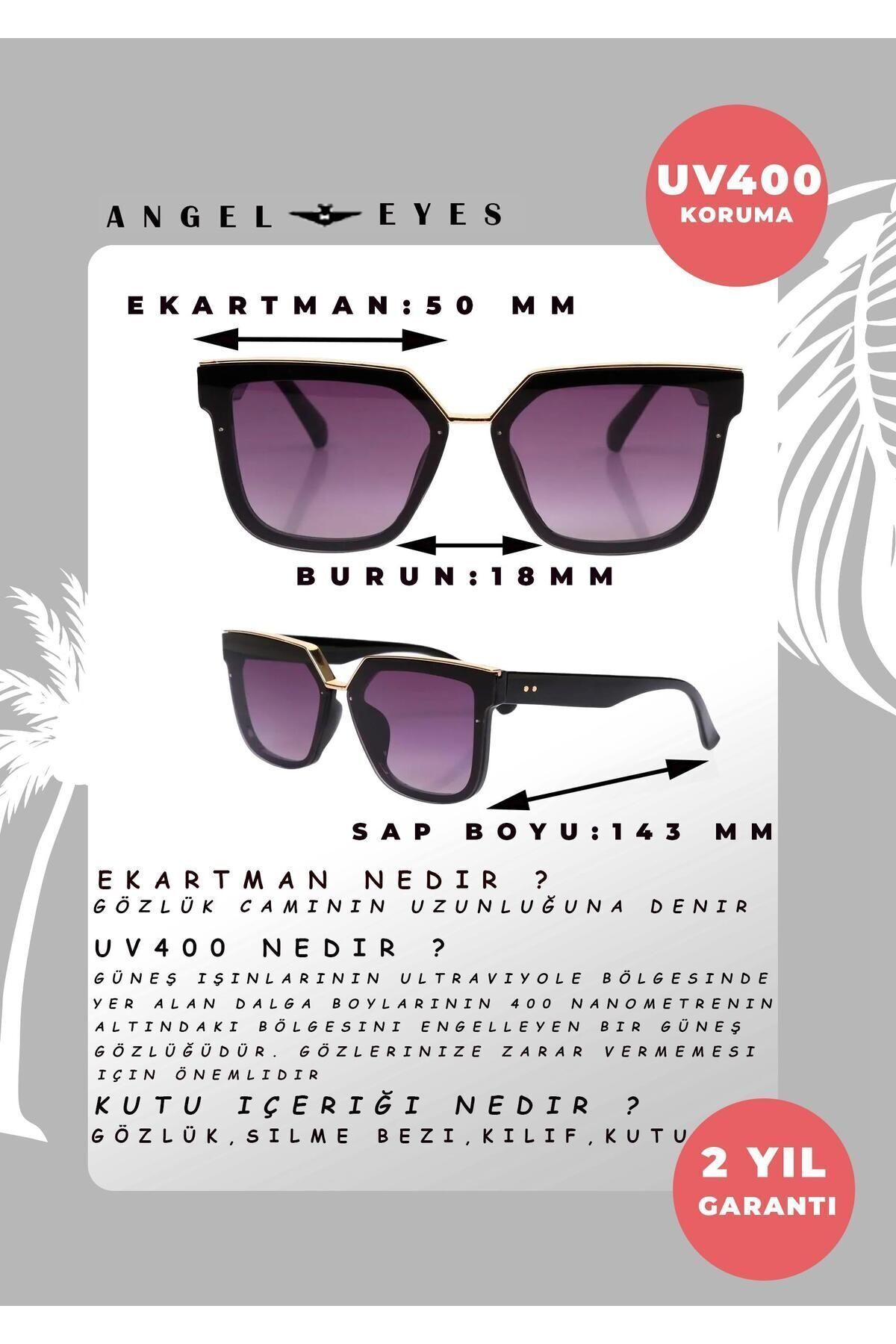 - UV400 cam materyali ile güneşin zararlı ışınlarına karşı tam koruma sunar, göz sağlığınızı ön planda tutar