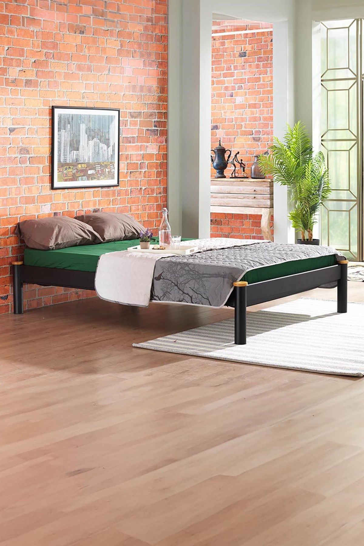 Modern tasarımıyla dikkat çeken Lulis çift kişilik metal karyola, şık ve çağdaş bir yatak odası atmosferi yaratır