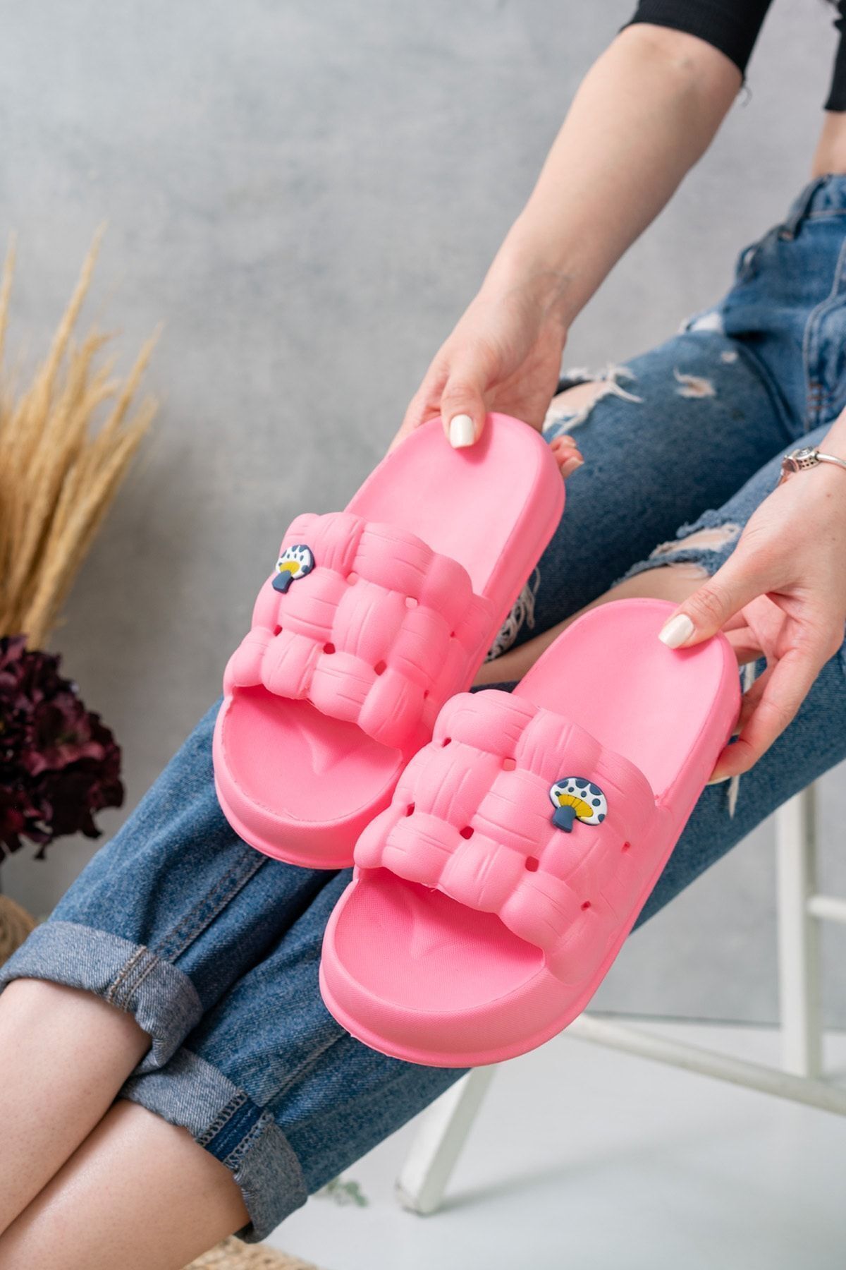 Bu kadın lüks hafif ve yüksek taban kaymaz sticker desenli günlük plaj, deniz, havuz ve banyo terliği, şıklığı ve konforu bir araya getiren mükemmel bir ayakkabı seçeneğidir.