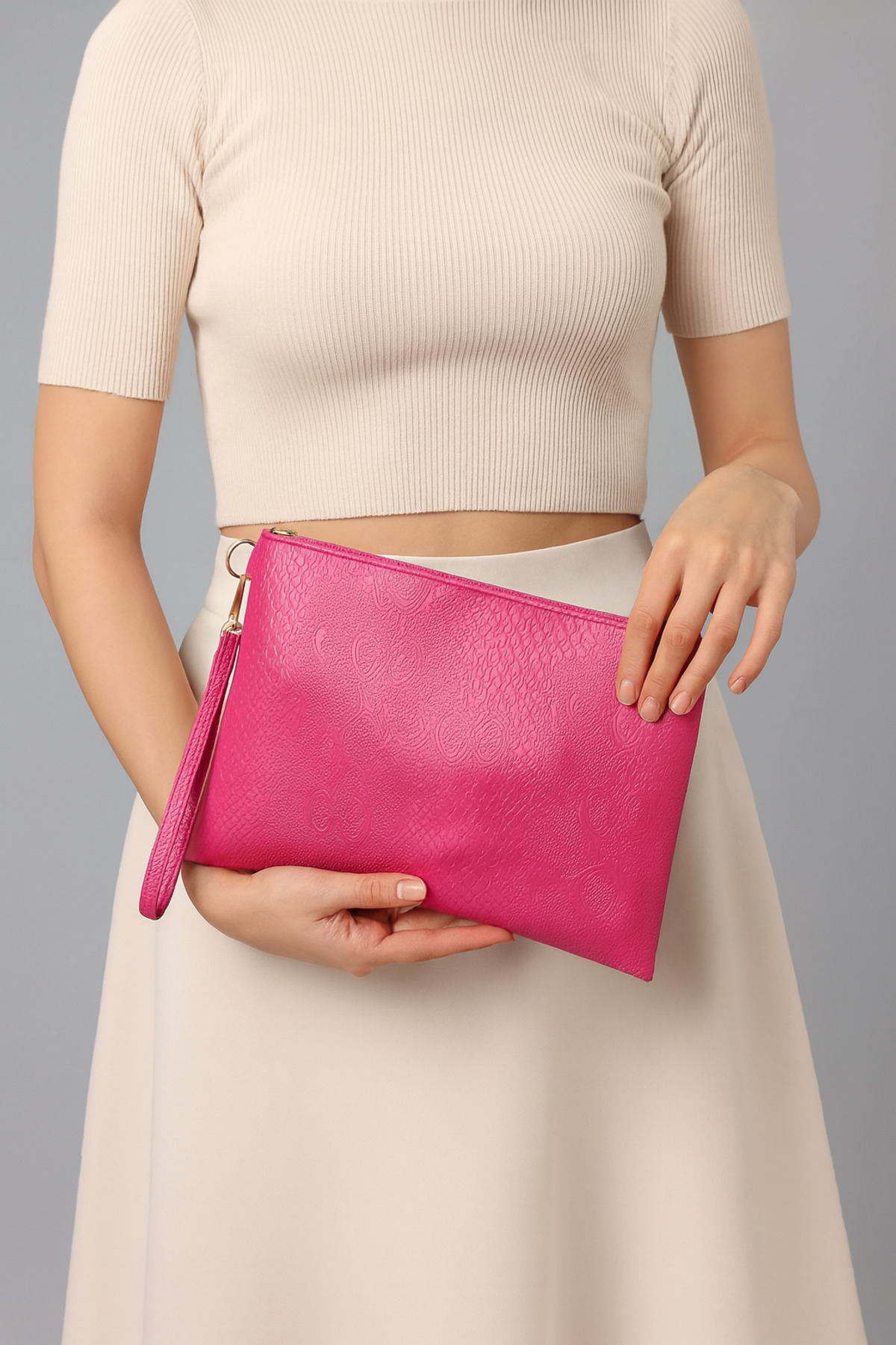 Özel tasarım koleksiyonuna ait bu clutch çanta, benzersiz stilinizi yansıtmanız için idealdir