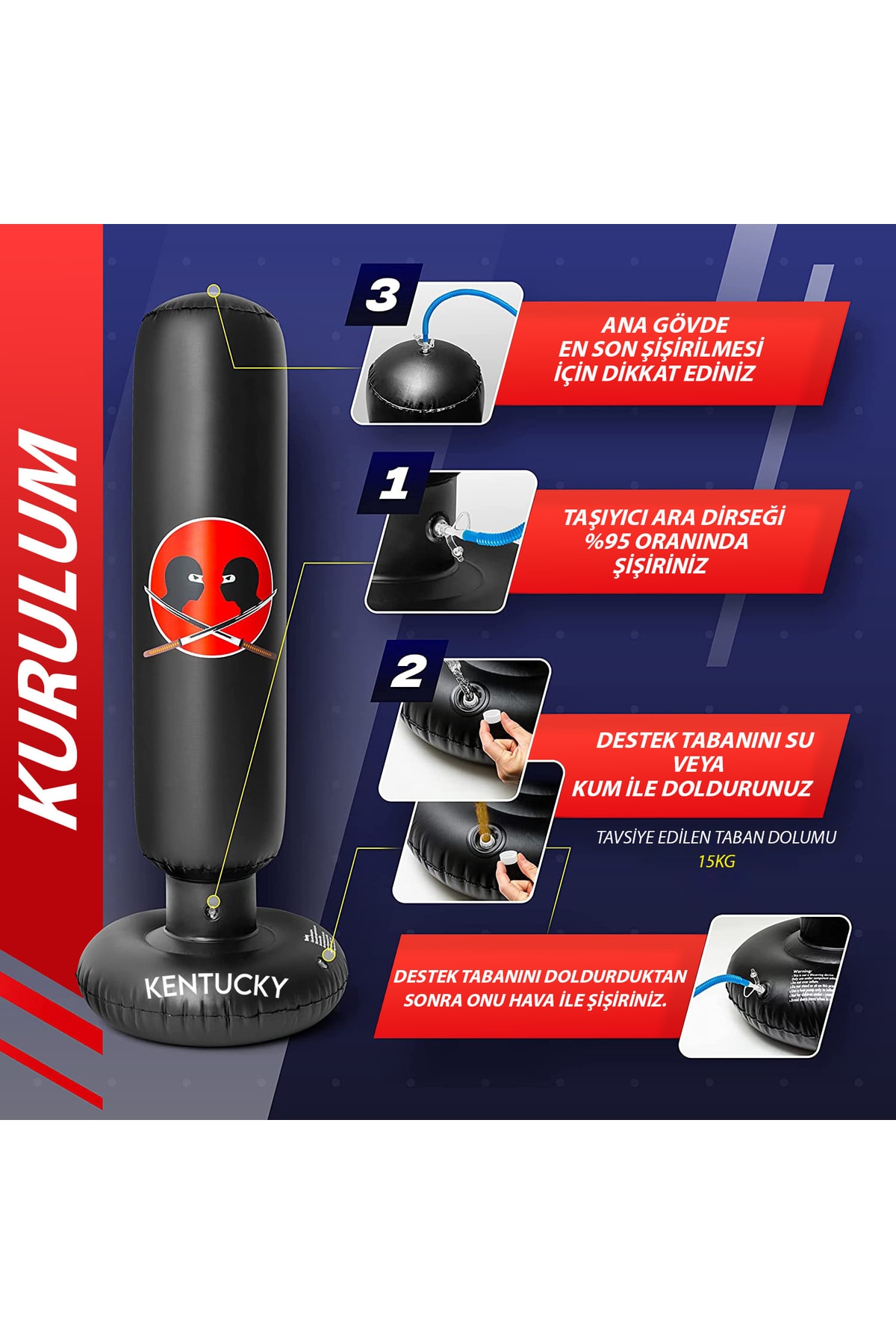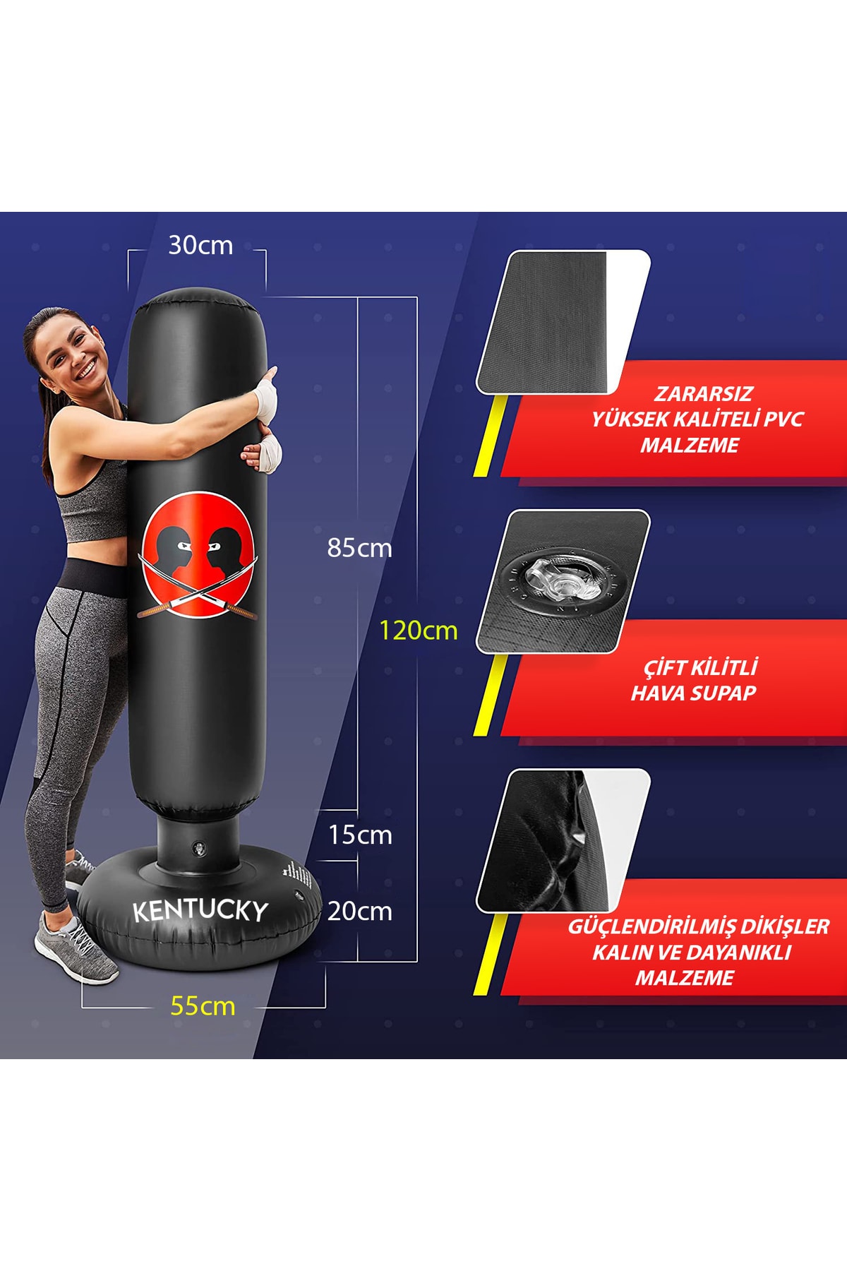 Çocukların boks becerilerini geliştirmek için ideal, 120 cm yüksekliğinde premium dikey ayaklı şişme boks torbası