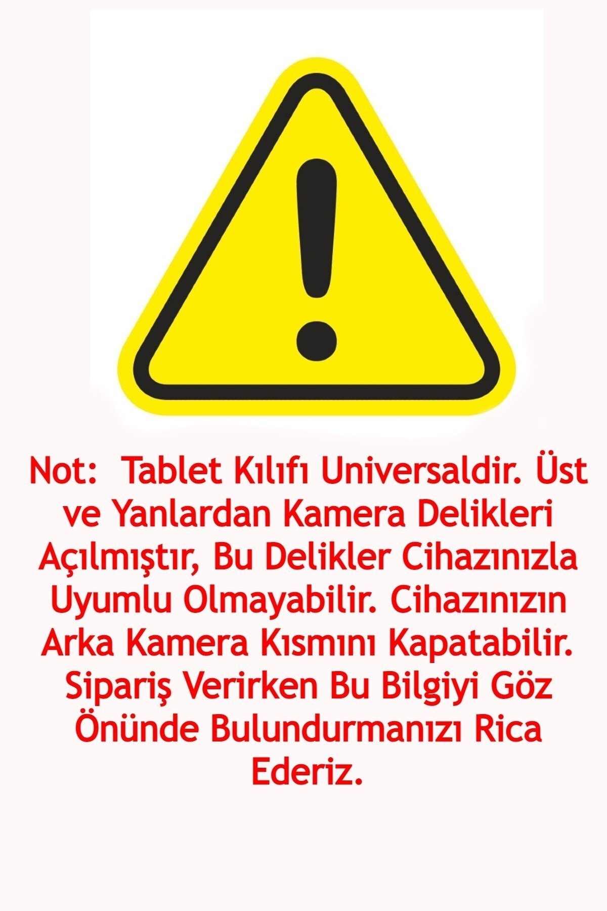 Tablet kılıfı universaldır üst ve yanlardan kamera delikleri açılmıştır.