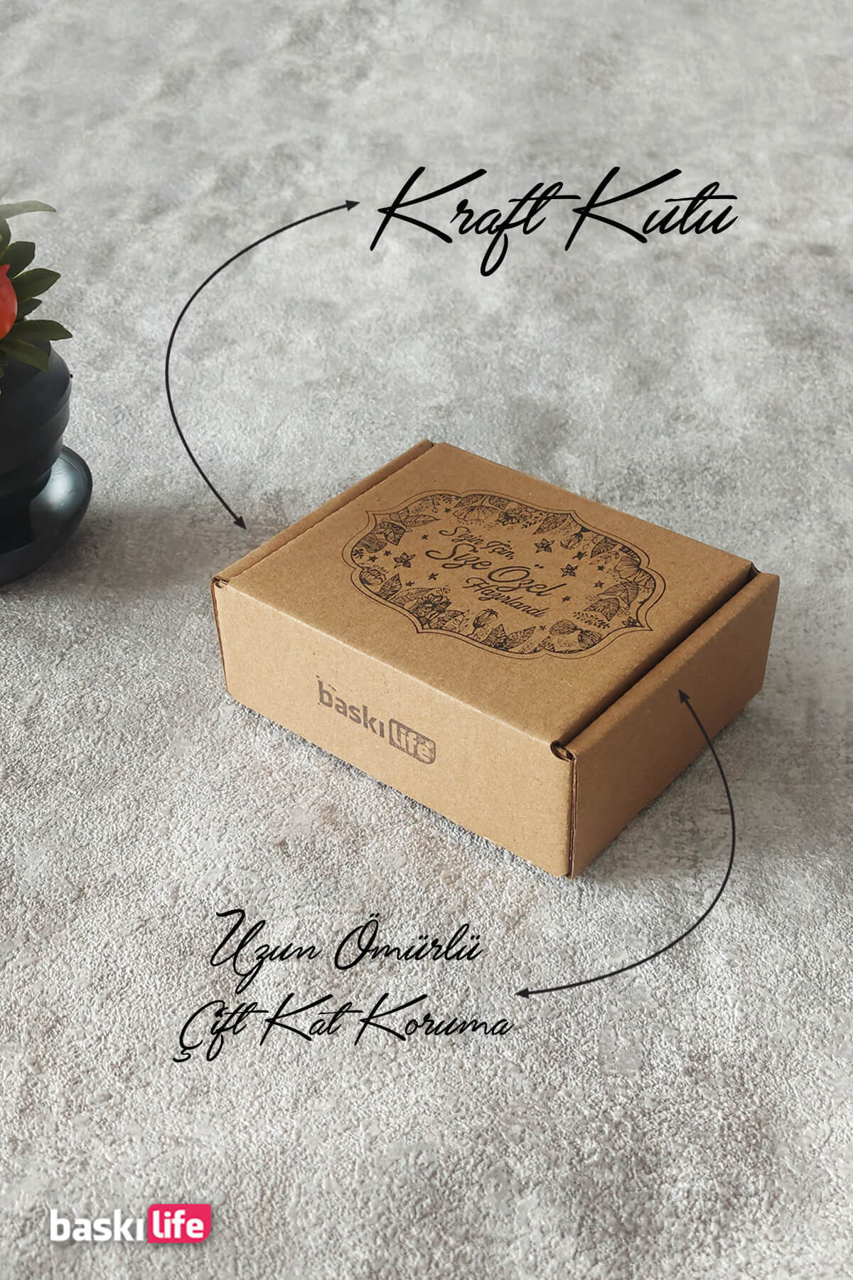PAKET İÇERİĞİ : Baskı Life ’a özel Ahşap kutu, Kraft Kutu, 1 adet ahşap saplı mühür (4x4 cm)