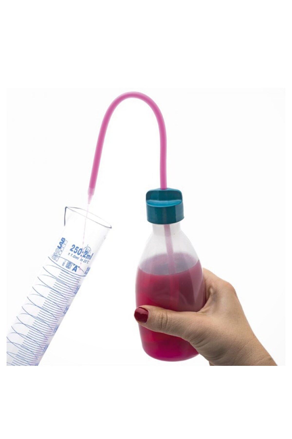 Özel tasarımlı esnek sıvı çıkış borusu kullanım sırasında vakum oluşumunu önler ve türbülanssız, düzenli sıvı akışını garanti eder.