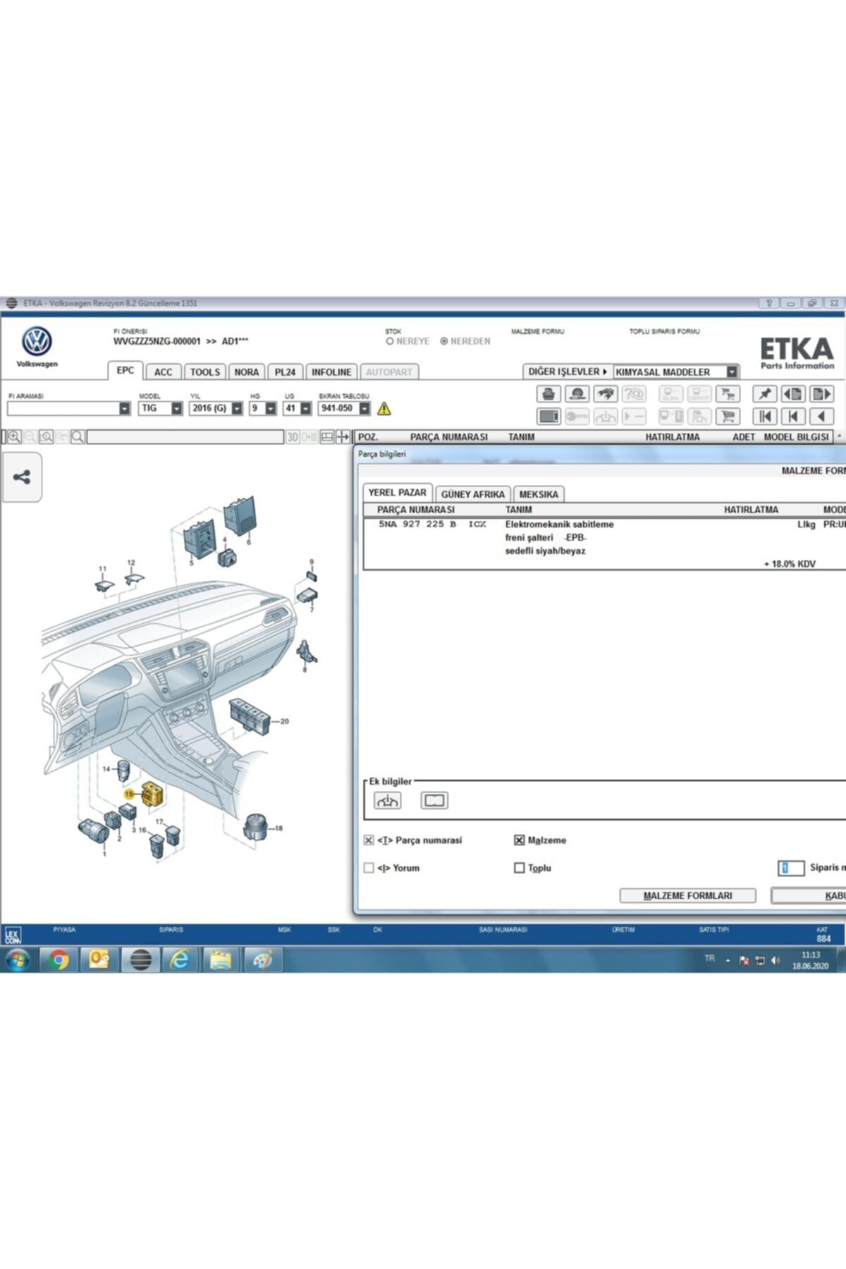 5NA927225 ve 5NA927225B referans numaralarına sahip bu park fren düğmesi, Tiguan araçlarınız için özel olarak tasarlanmıştır ve aracınızın park fren sisteminin sorunsuz çalışmasını sağlar