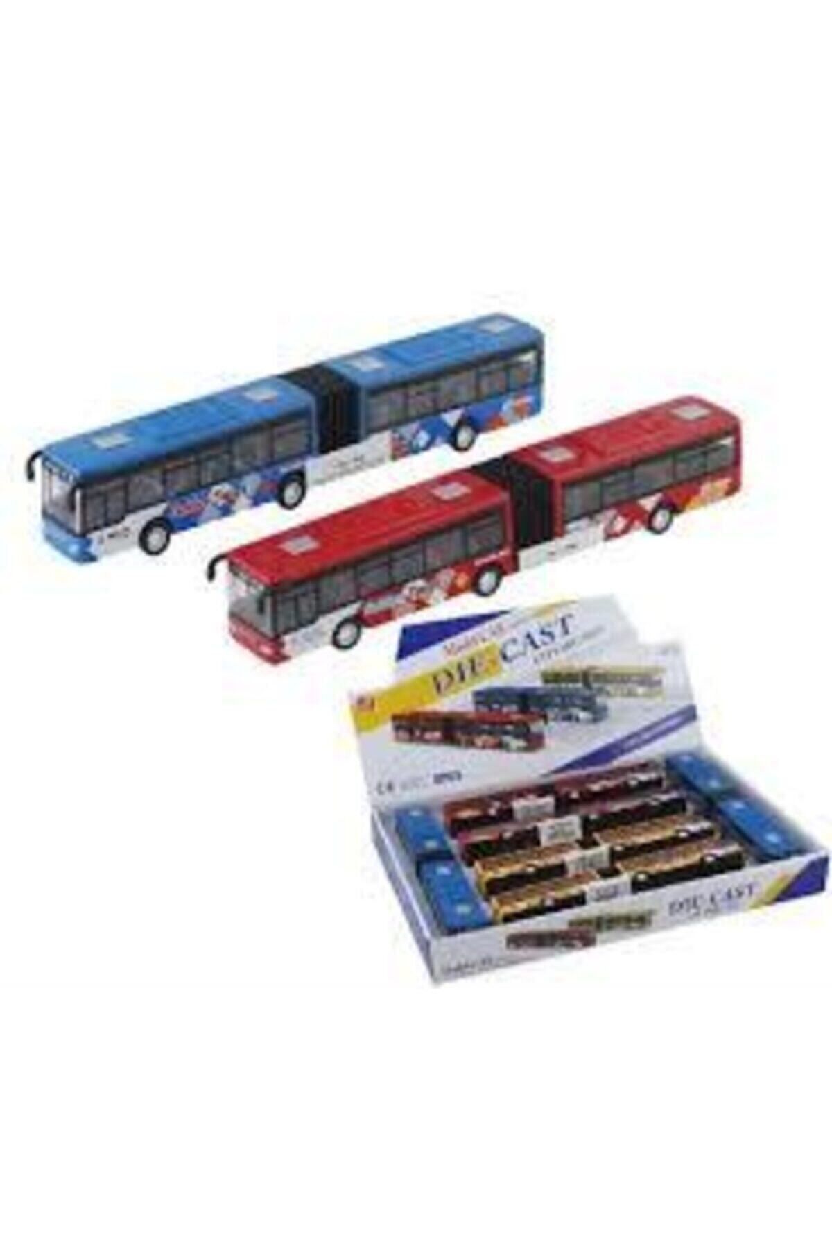 3 ile 6 yaş arası çocukların eğlenceli vakit geçirmesi için ideal, mavi renkli çek bırak körüklü metal otobüs