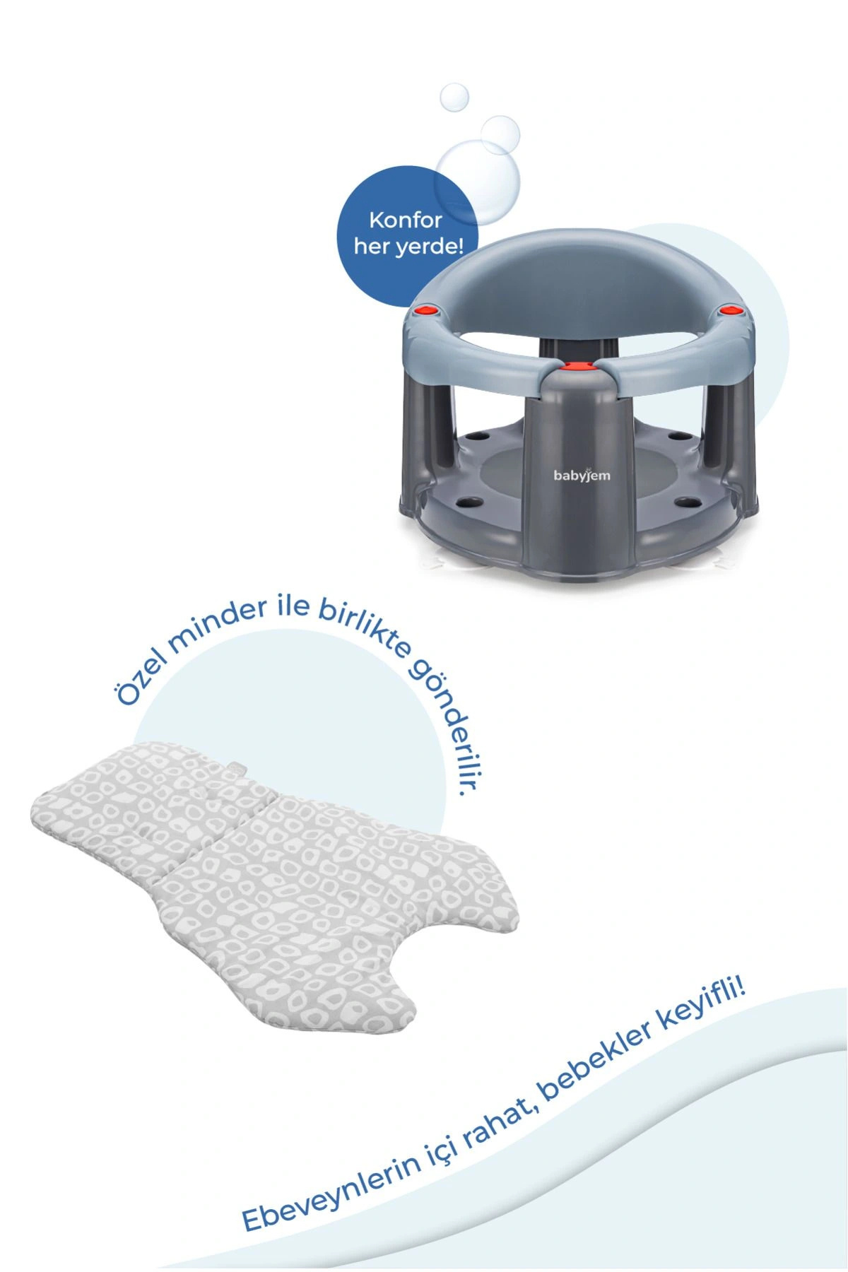 Babyjem Önden Açılır Banyo ve Mama Oturağı - 2 ' Li Set Gri
