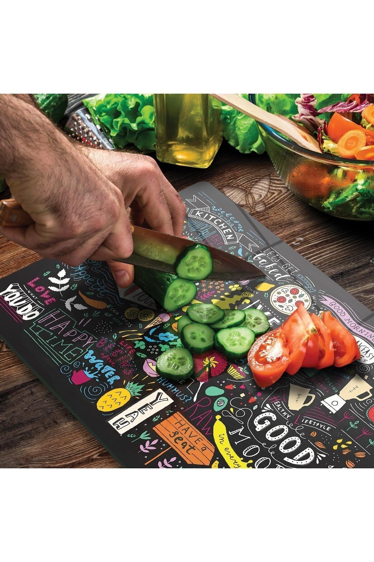 Fonksiyonel Kullanım: Yüksek kaliteli cam malzeme, kesme işlemi sırasında yiyeceklerinizi temiz bir yüzeyde hazırlamanıza yardımcı olur.