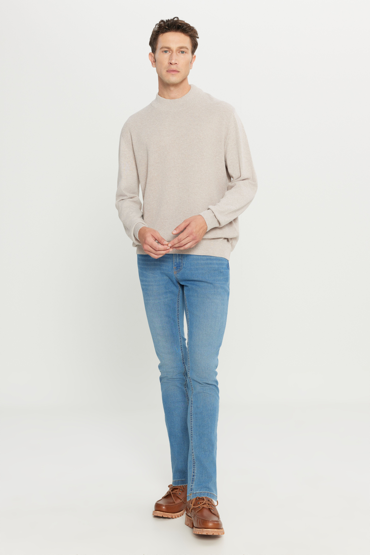 %52 Pamuk %44 Polyester %4 Viskon, Armürlü Bej, Yarım Balıkçı Bato Yaka, Casual Model, Standart Fit, Uzun Kollu, Sıcak Tutan, Cepsiz, Kış Koleksiyonu, AC Basics Standart Fit Yarım Balıkçı Yaka Triko, Ürün Bedeni: L, Manken Ölçüleri: Boy: 1.89cm, Kilo: 80kg, Ürün Kodu: 4A4921100008BEJ.