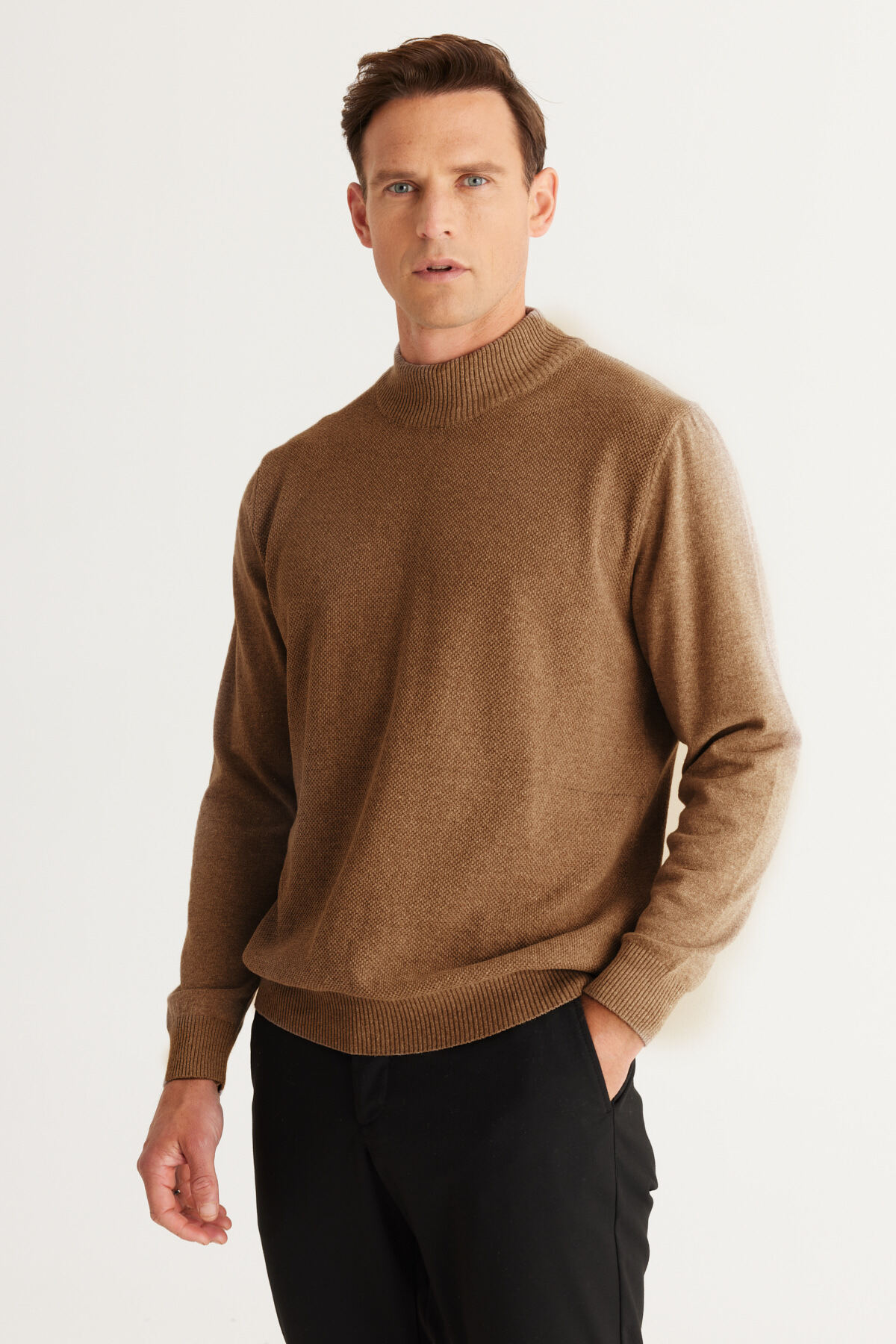 %53 Pamuk %45 Polyester %2 Viskon, Armürlü Vizon, Yarım Balıkçı Yaka, Casual Model, Standart Fit, Uzun Kol, Cepsiz, Kış Koleksiyonu, AC Basics Standart Fit Yarım Balıkçı Yaka Triko, Ürün Bedeni: L, Manken Ölçüleri: Boy: 1.89cm, Kilo: 80kg, Ürün Kodu: 4A4921100008VIZ.