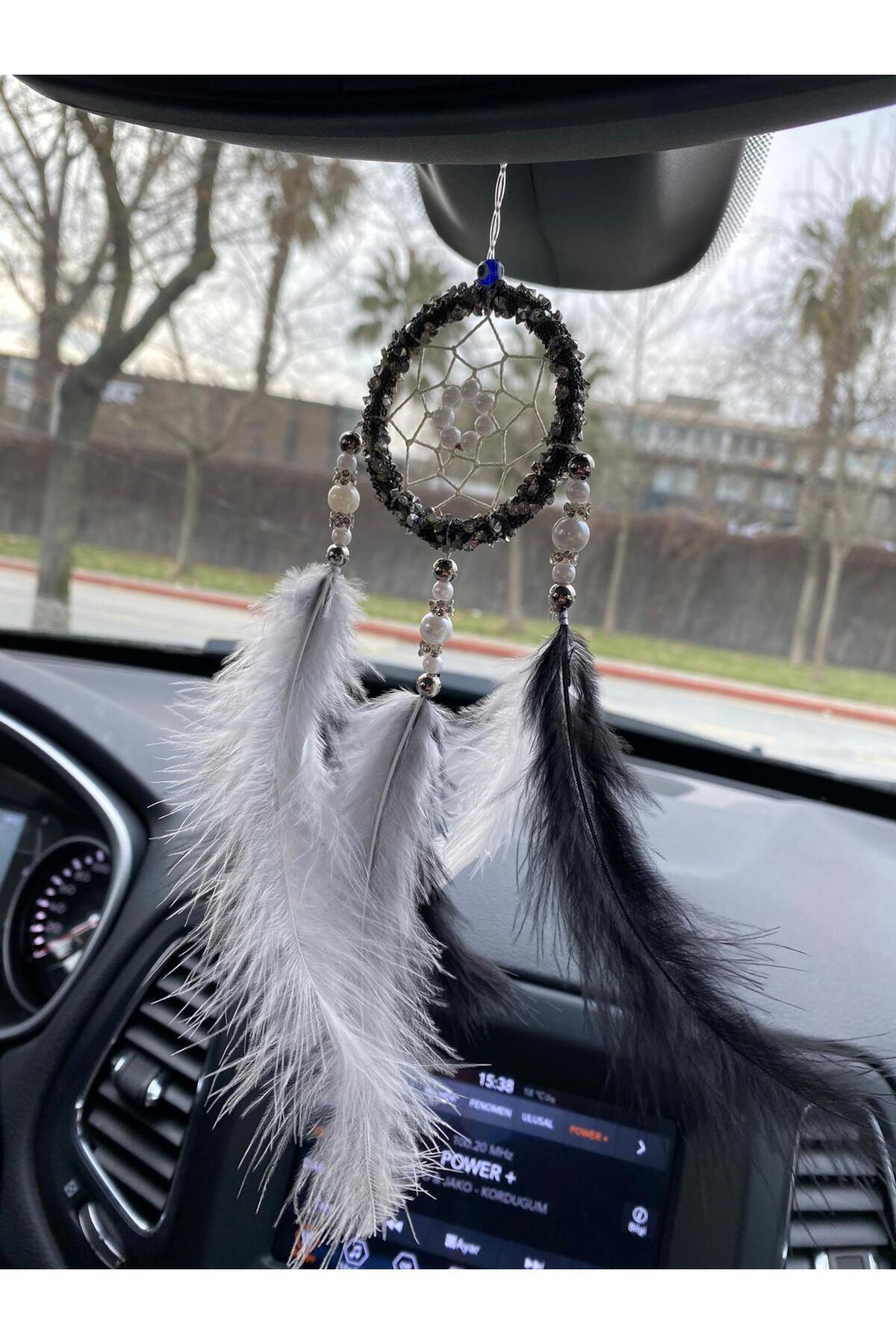 - El yapımı tasarımıyla dikkat çeken bu siyah beyaz rüya kapanı, aracınıza özgün bir dokunuş katıyor.