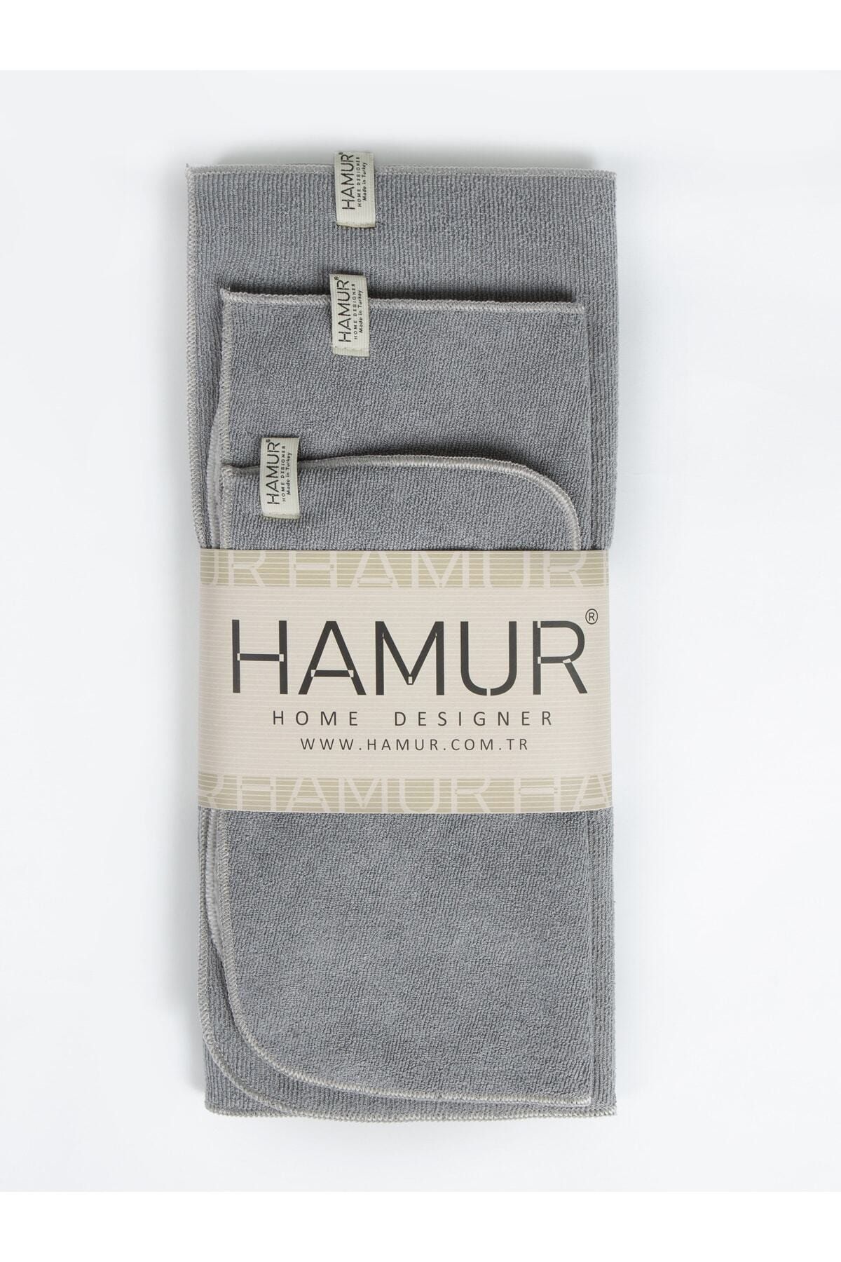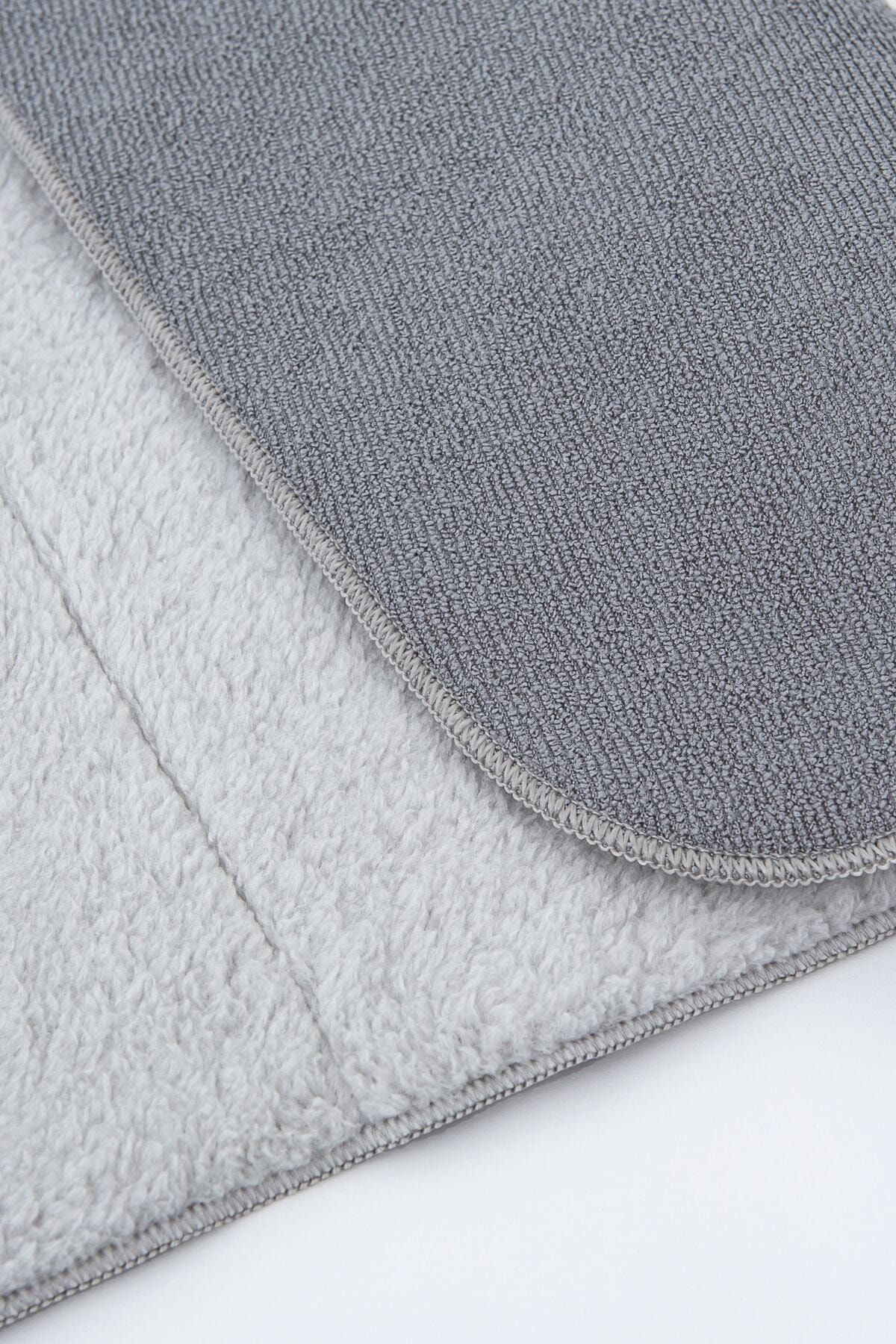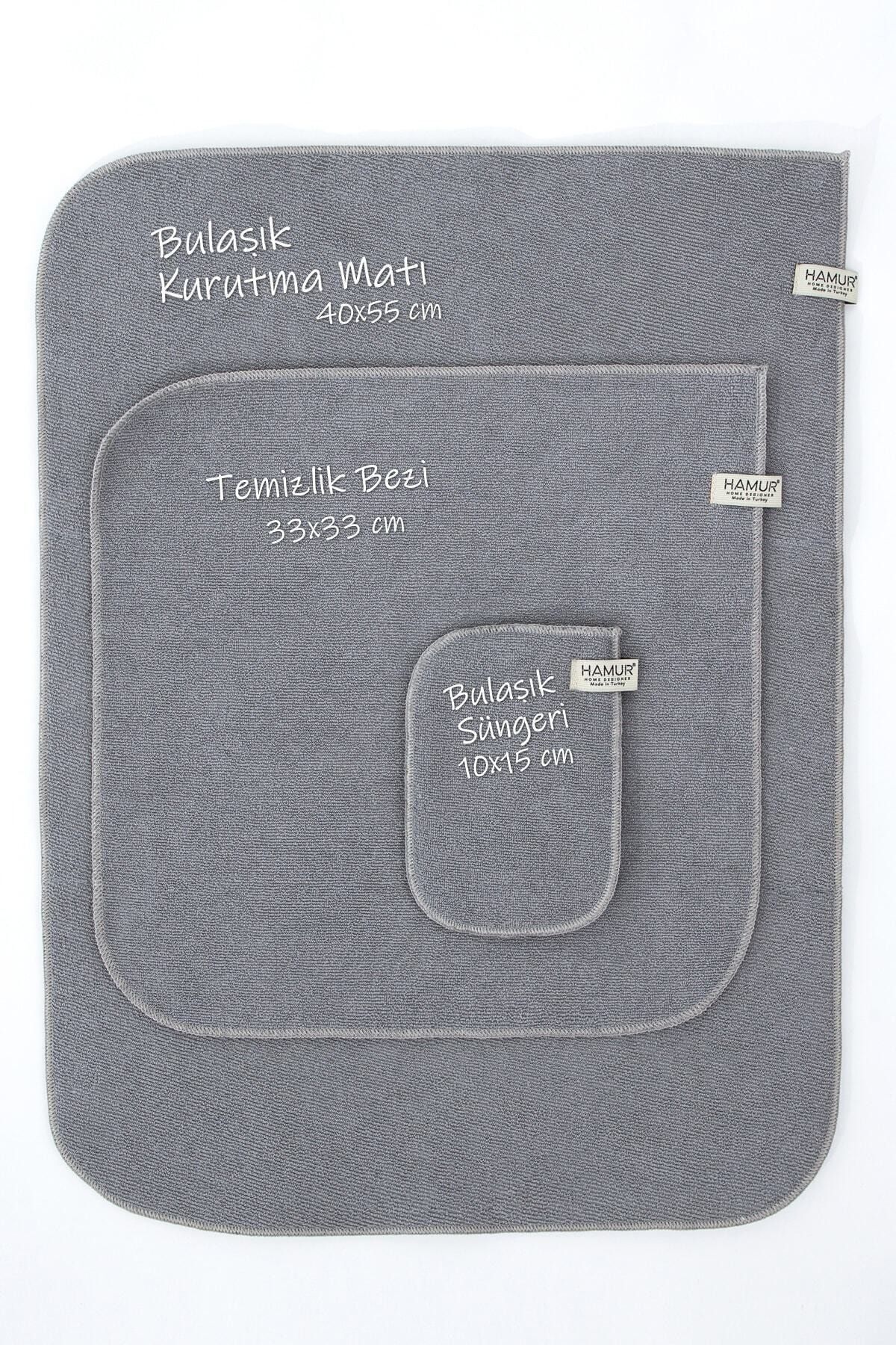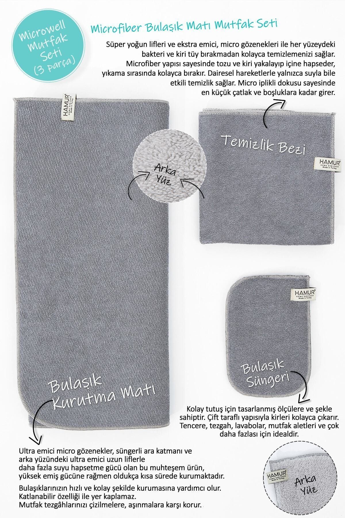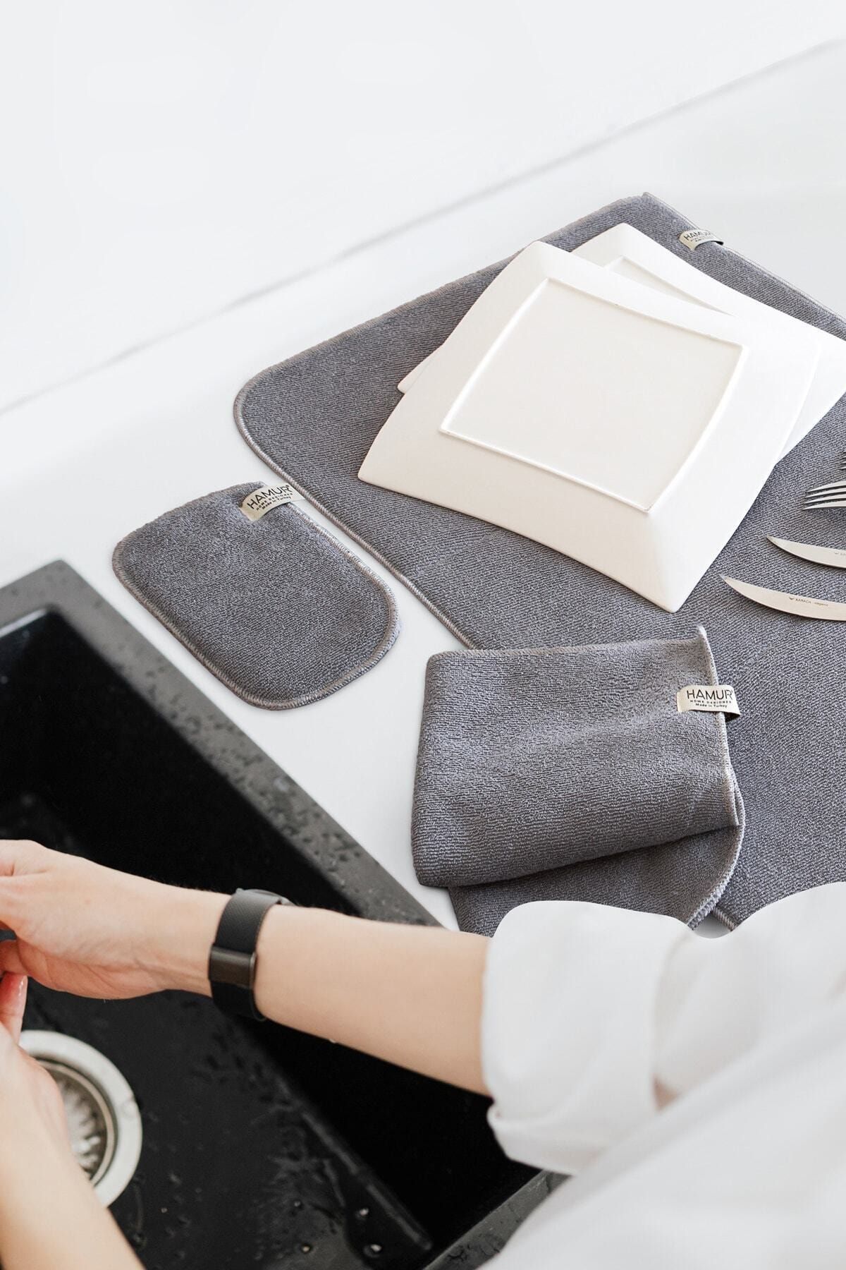 Gri Microwell 3 Prç Set Microfiber Bulaşık Kurutma Matı 3'lü Mutfak Seti Kurulama Bezi Örtüsü