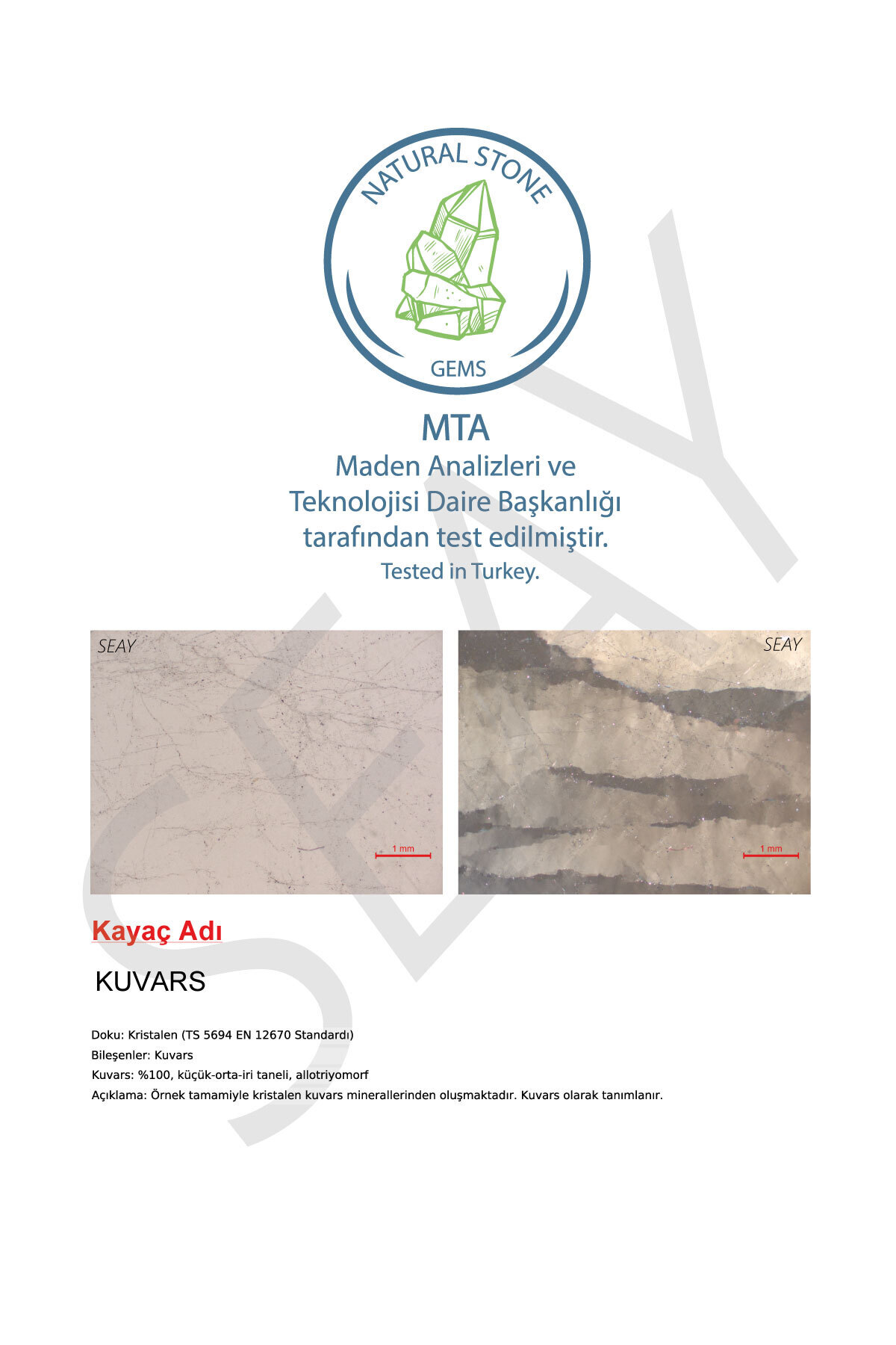 Maden Analizleri ve Teknolojisi Dairesi Başkanlığı (MTA) tarafından test edilmiştir.
